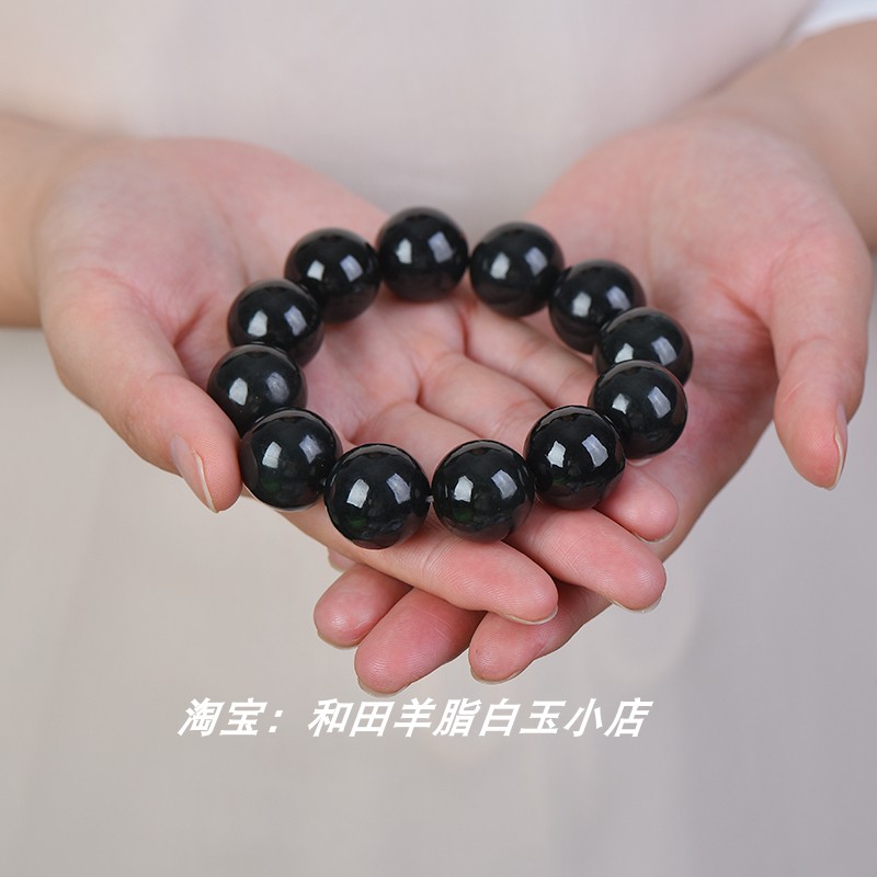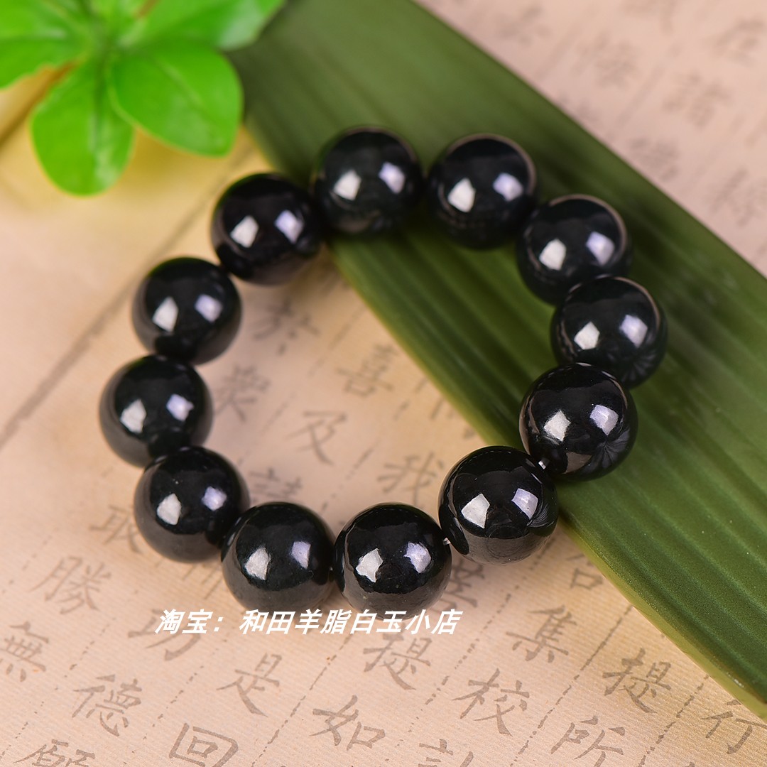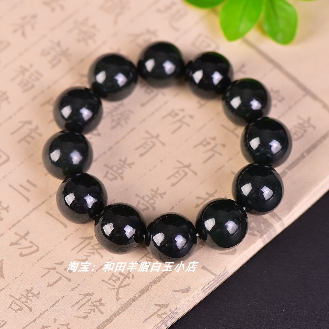 天然新疆和田玉手串青玉手链男女青玉手串手链玉珠子手链单珠20MM
