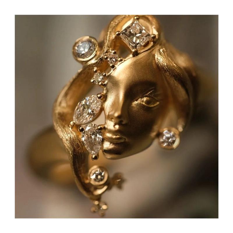 中古vintage古董人像戒指小众设计师款艺术感原创手作食指环配饰