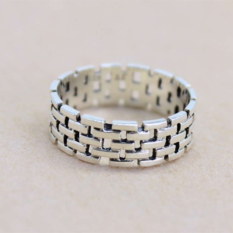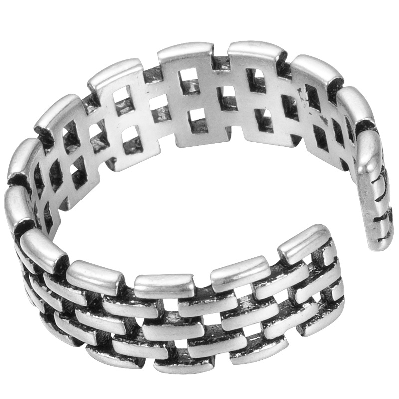 个性百搭简约设计S925纯银配饰品复古镂空泰银开口链条戒指女指环