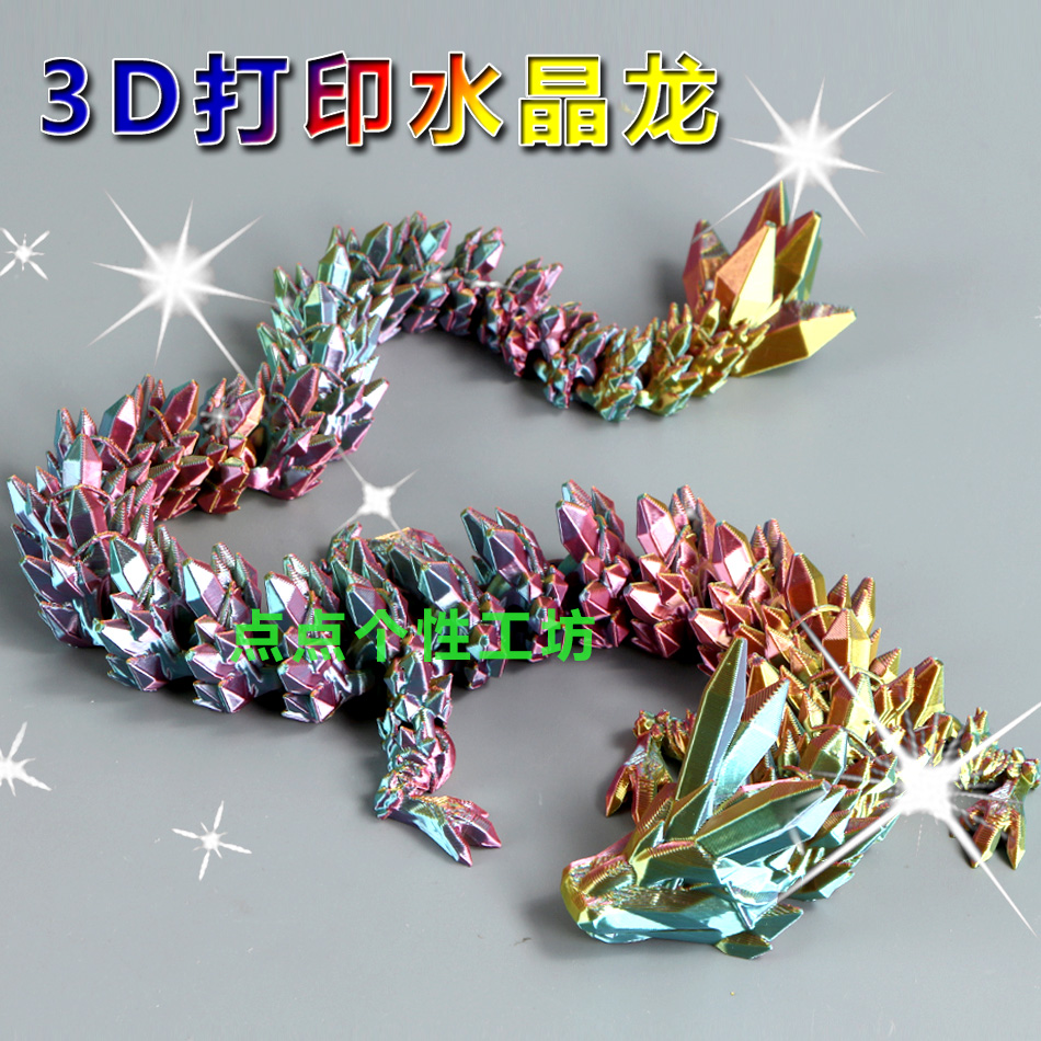 3d打印活动关节水晶龙中国小神龙儿童玩具水晶夜光钻石龙手办摆件