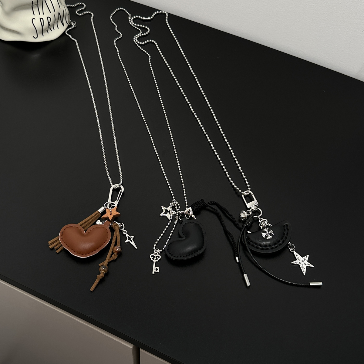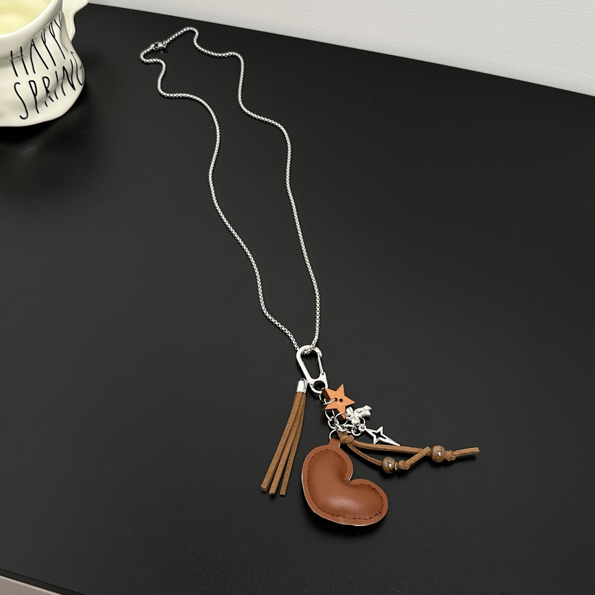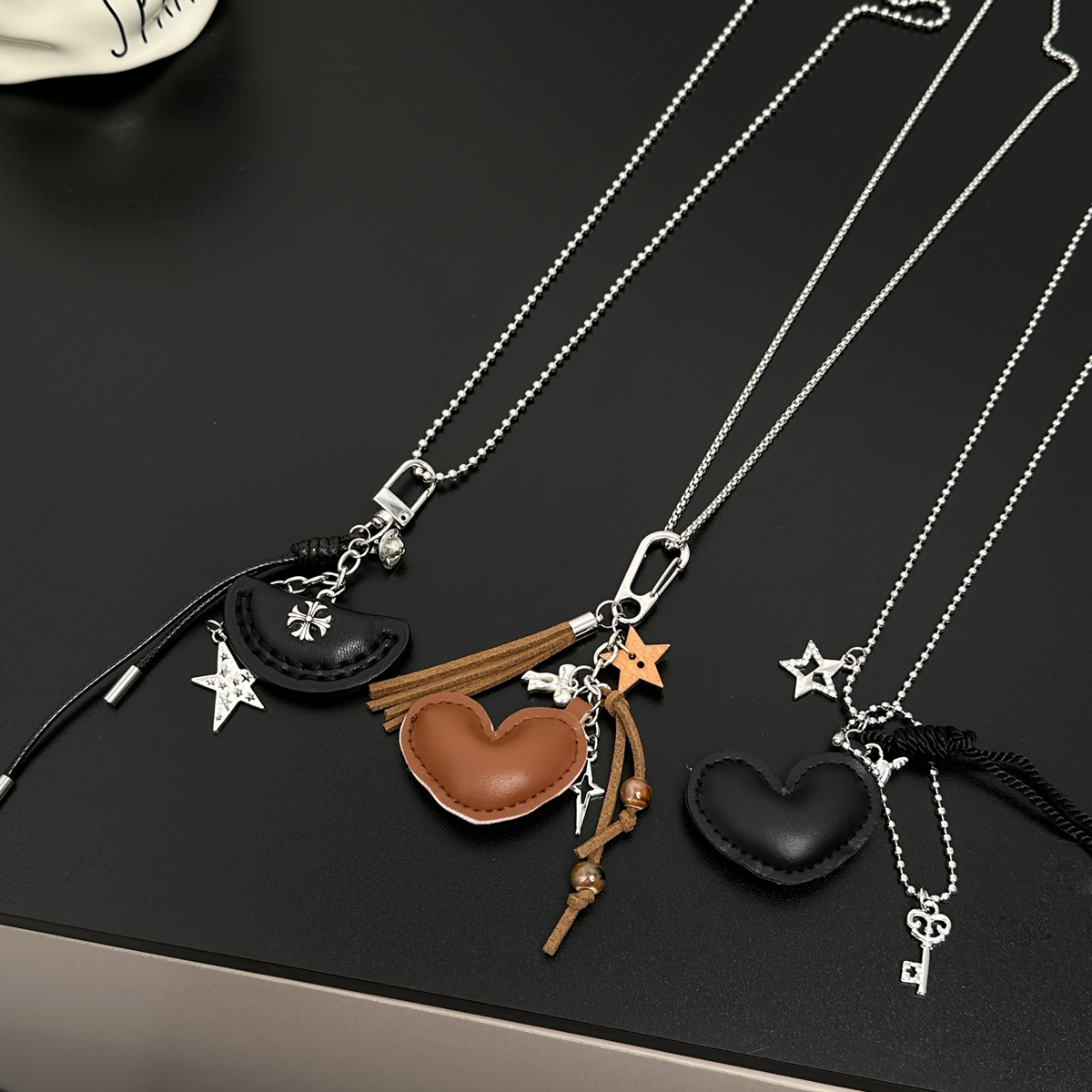 皮革爱心吊坠项链女长款个性小众高级感斜挎卫衣毛衣链男包包挂件