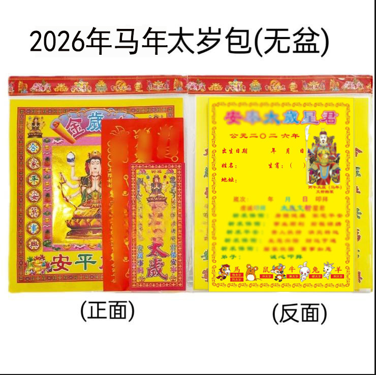 2026年红色金字纸牌泰歲化福马年用品生肖马鼠兔牛羊填写表文