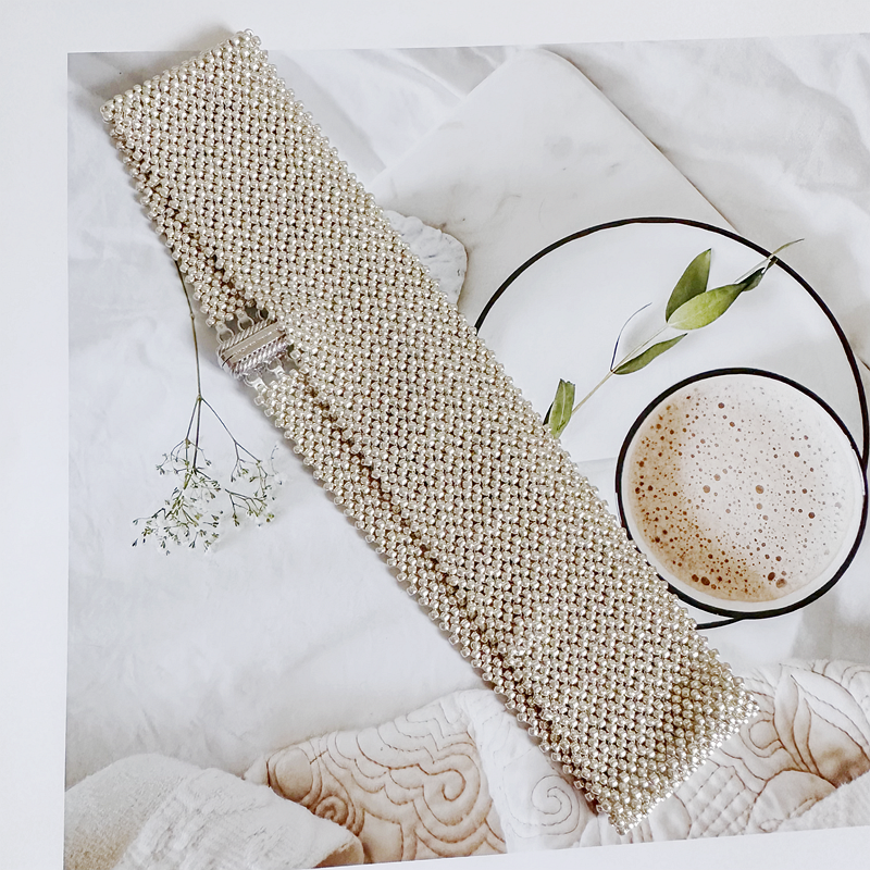 轻奢手工编织定制走秀宽版银色金属质感choker颈链颈带锁骨短项链