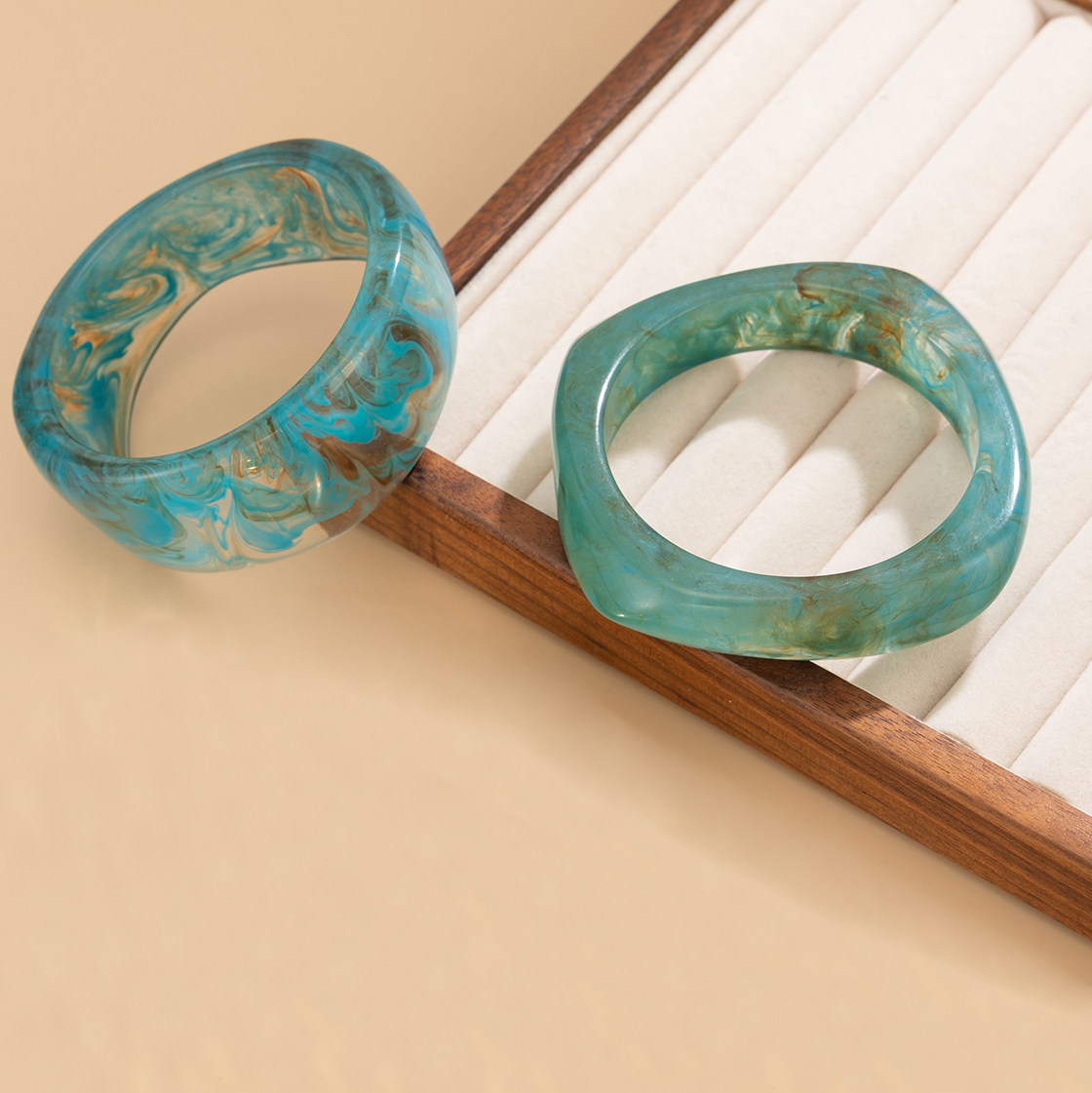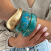 不规则晕染孔雀蓝树脂手镯女2025潮时尚个性网红写真拍照搭配饰品