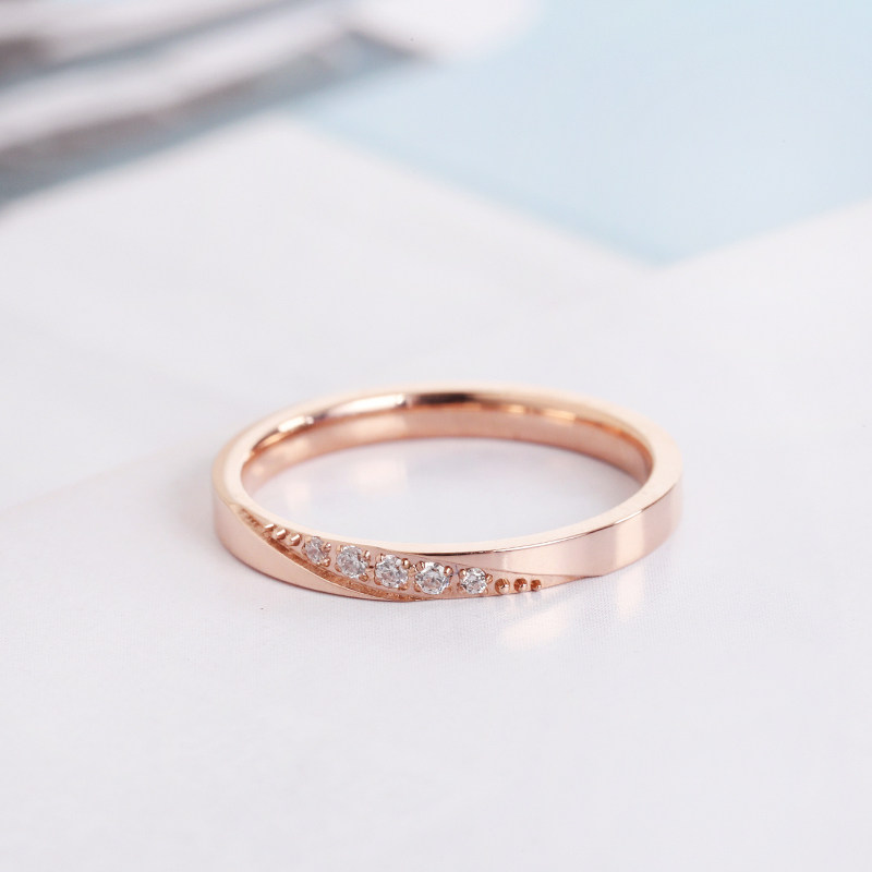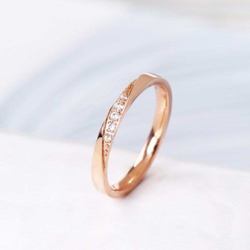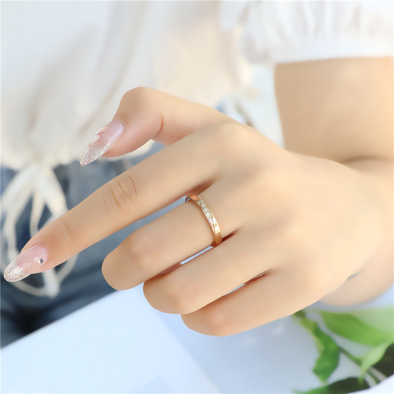 日系轻奢钻石戒指女小众设计ins潮时尚个性钛钢18k玫瑰彩金食指环