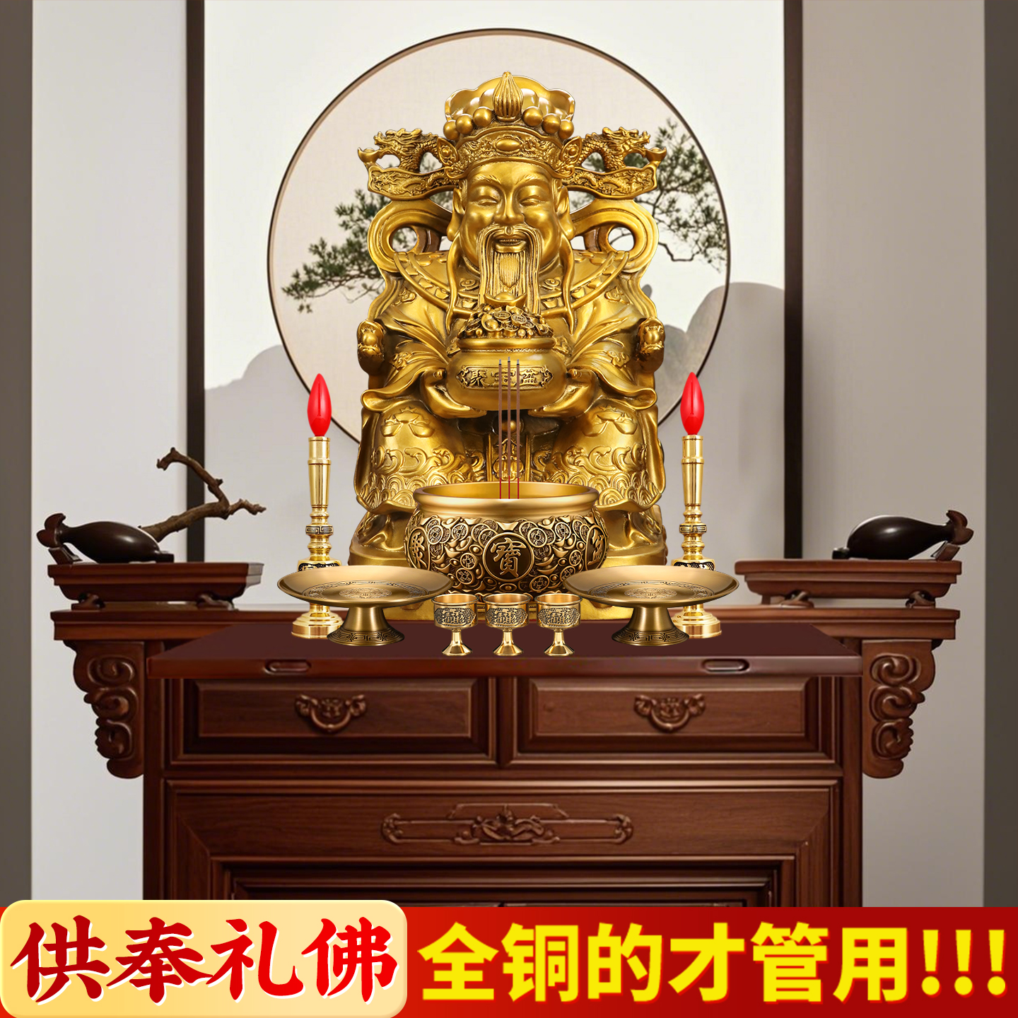 铜香炉家用供奉套装果盘供杯电蜡烛台上香炉供香财神室内佛具用品