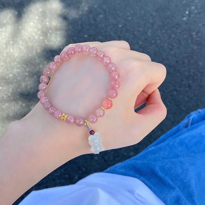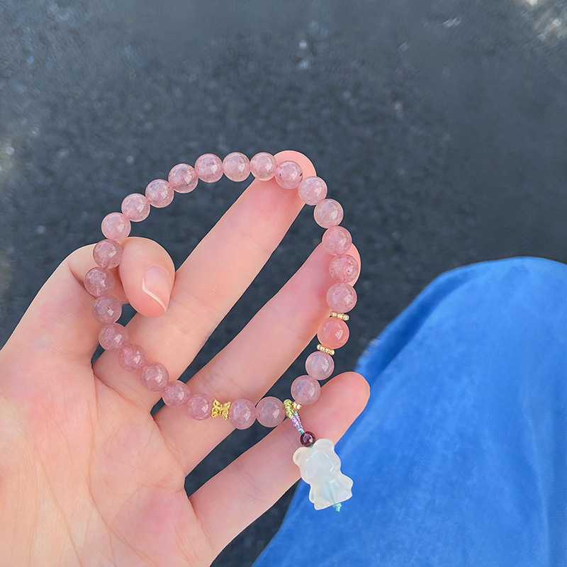 熊敦敦~甜美可爱ins清新森系玉髓小熊吊坠手链6mm草莓晶闺蜜手串
