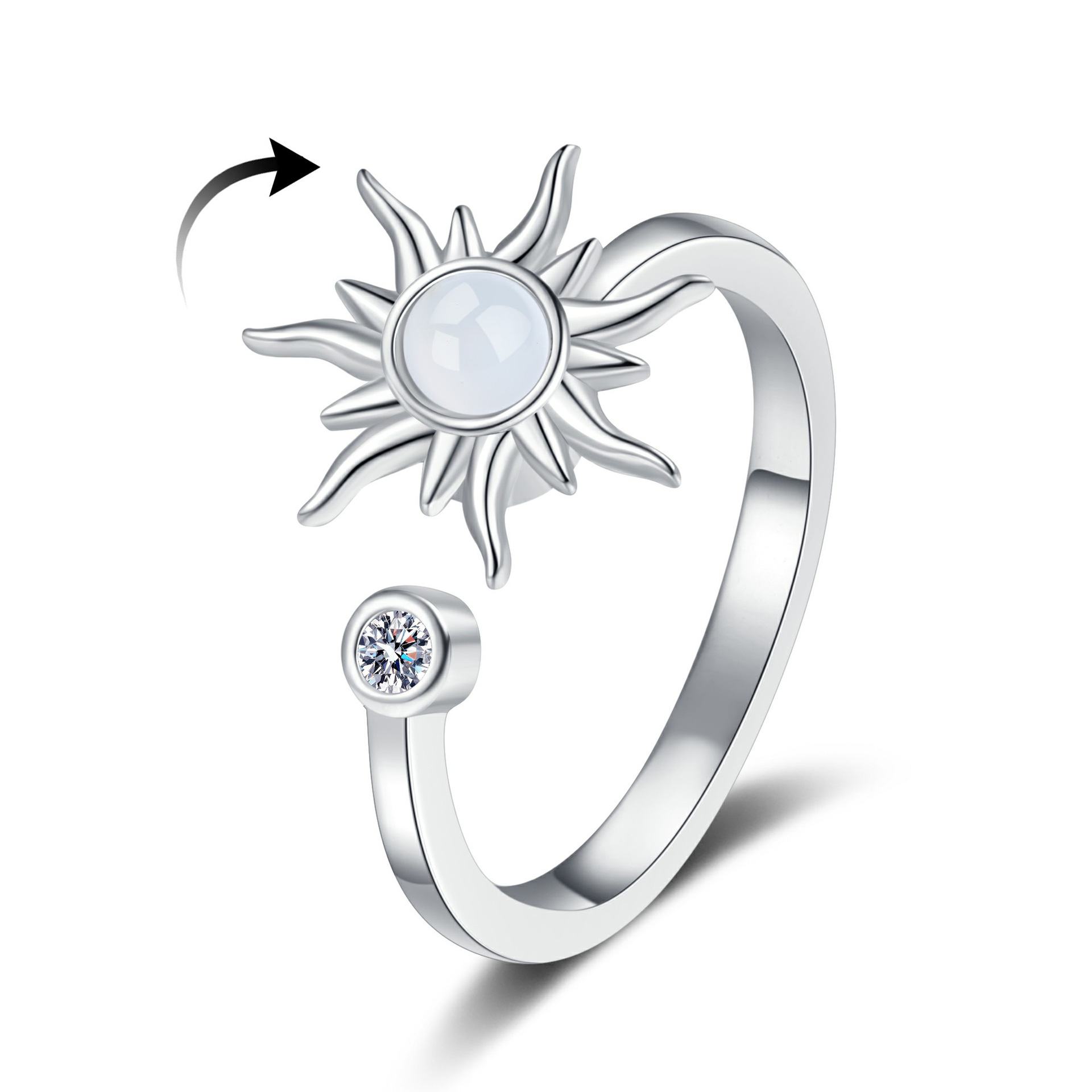欧美热销s925纯银个性百搭可旋转戒指可调节缓解焦虑压力手饰