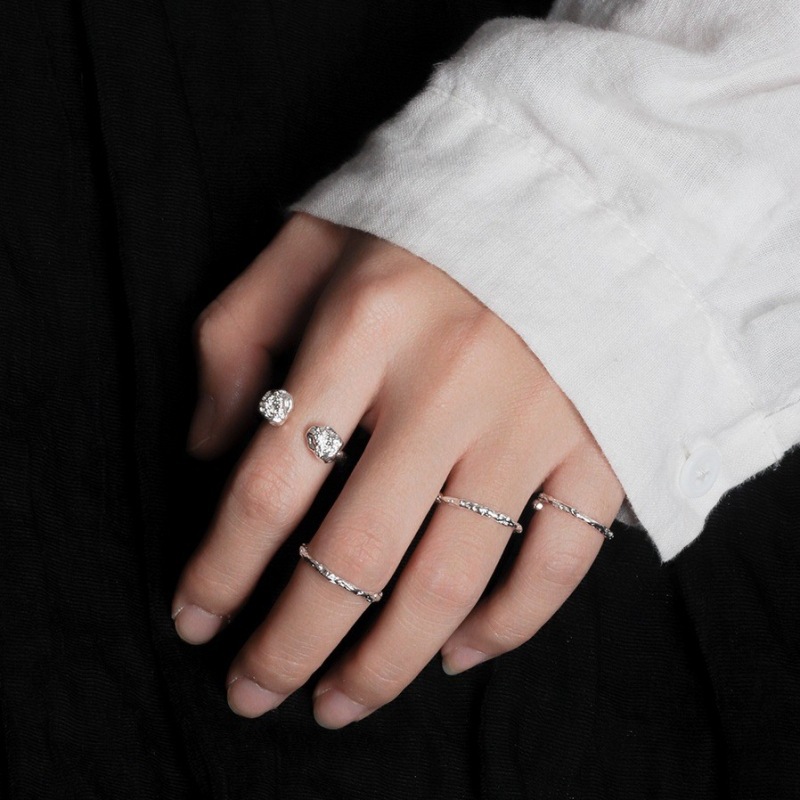 饰尚e族简约方块蓝色锆石戒指女素圈肌理锡箔纸纹理开口指