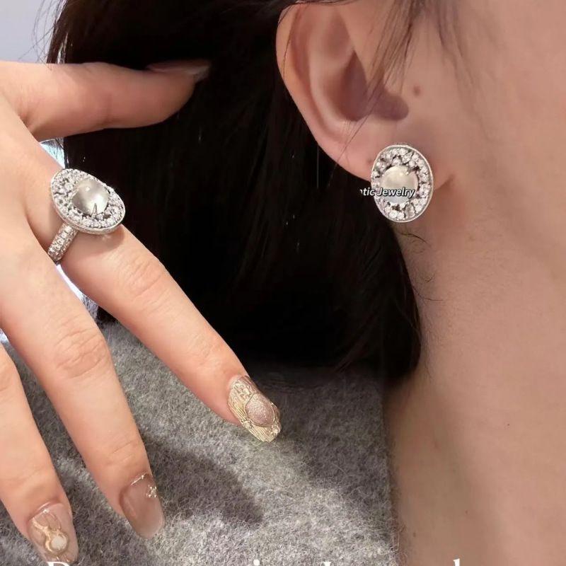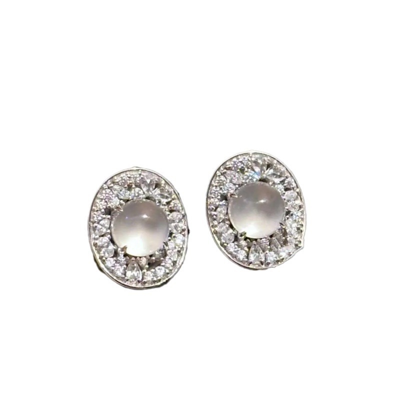 蒂晨设计灯泡小元宝迎财水沫玉蛋面戒指 新中式925银针气质耳钉