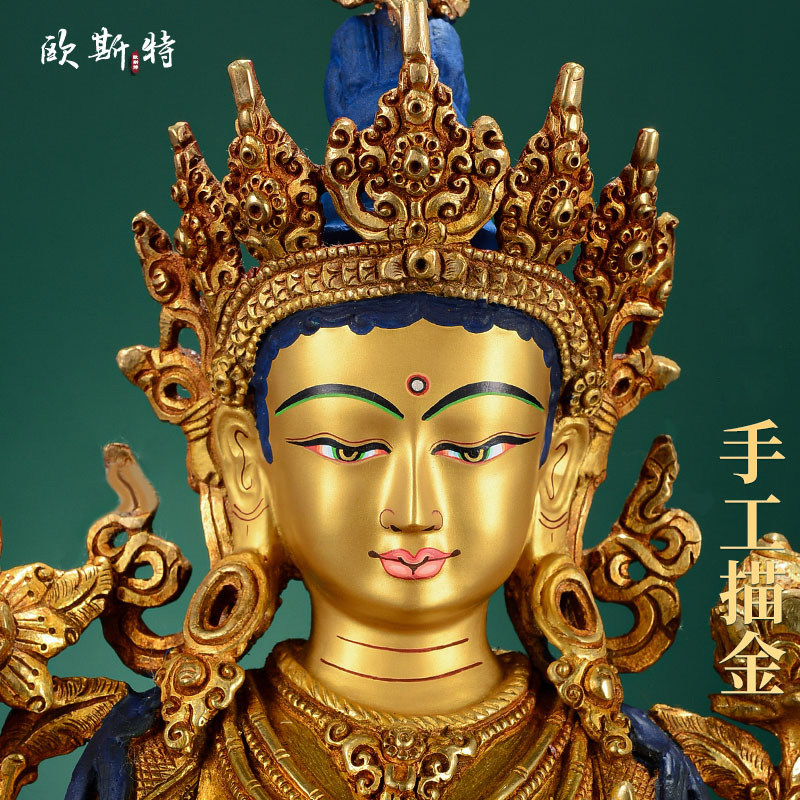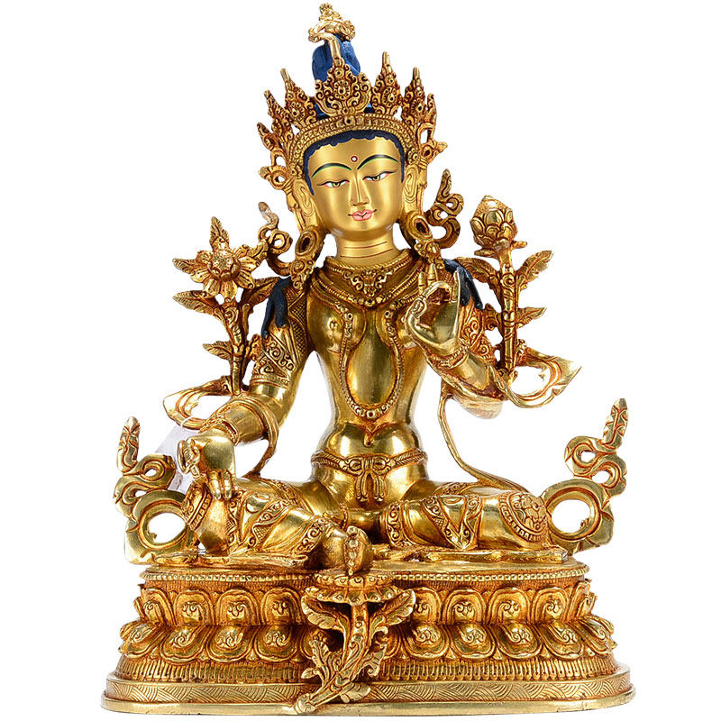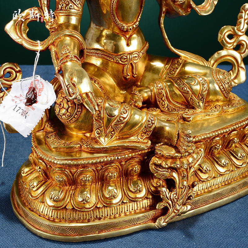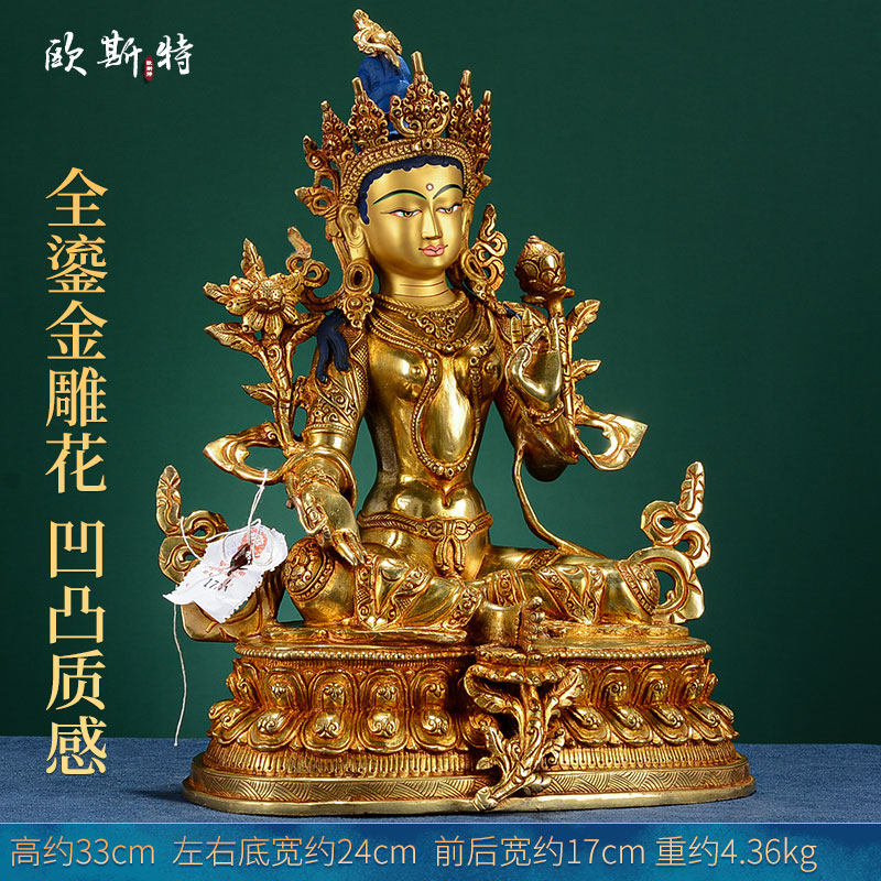欧斯特 绿度母铜像 家居饰品尼泊尔10寸铜全鎏金观音菩萨中式摆件