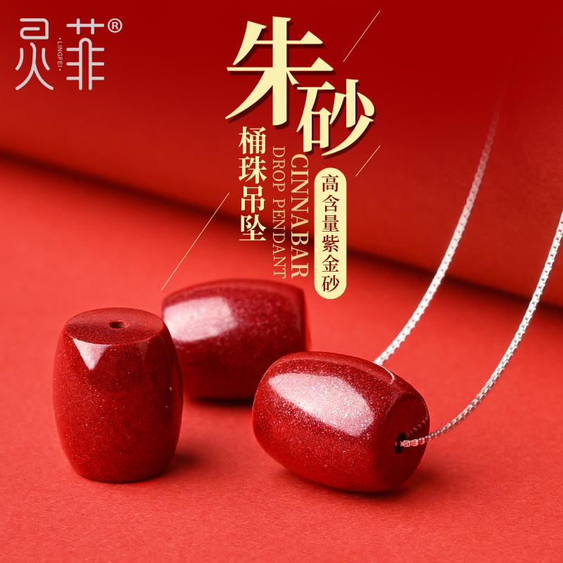 速发朱砂路路通吊坠本命年原矿挂件桶珠项链男