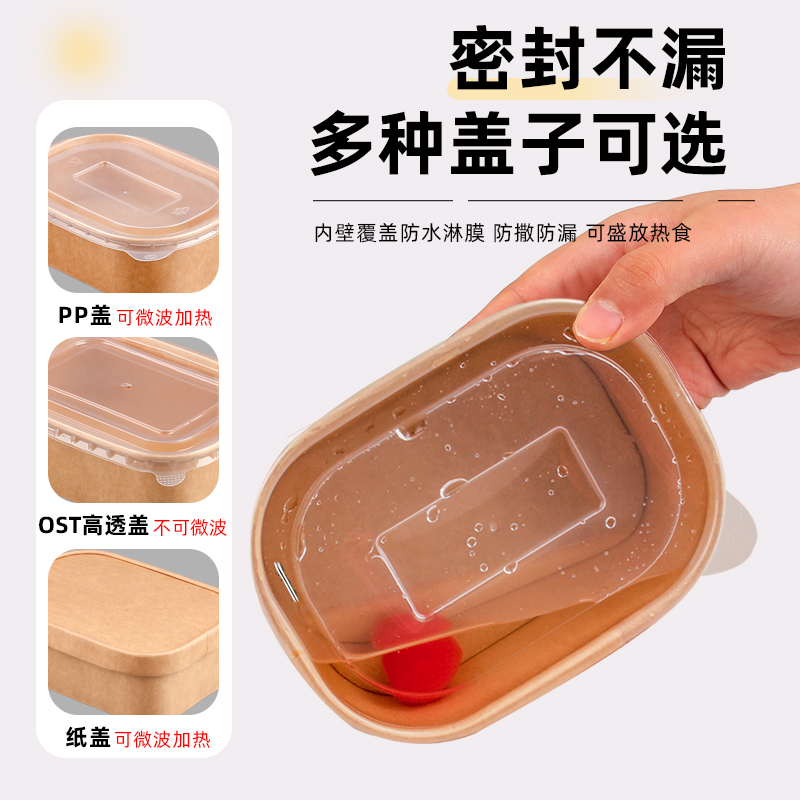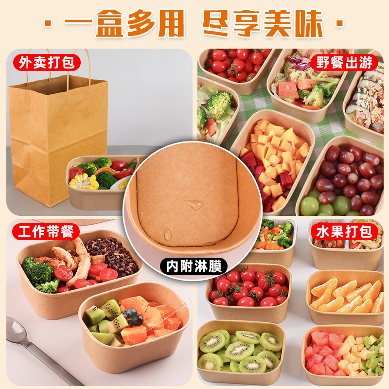 一次性饭盒打包盒食品级餐盒可微波炉加热牛皮纸外卖碗专用便当盒