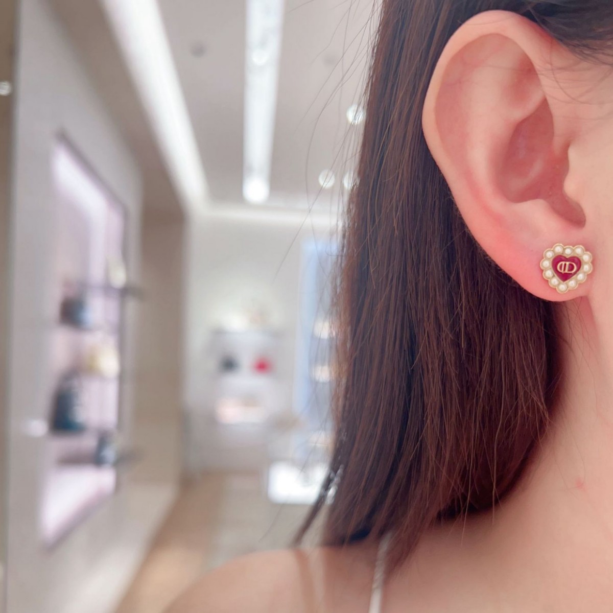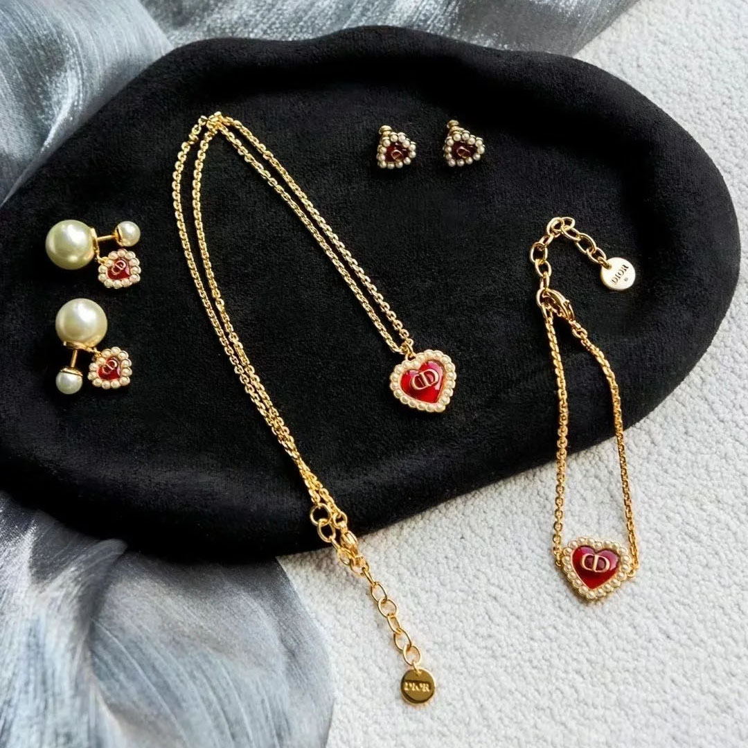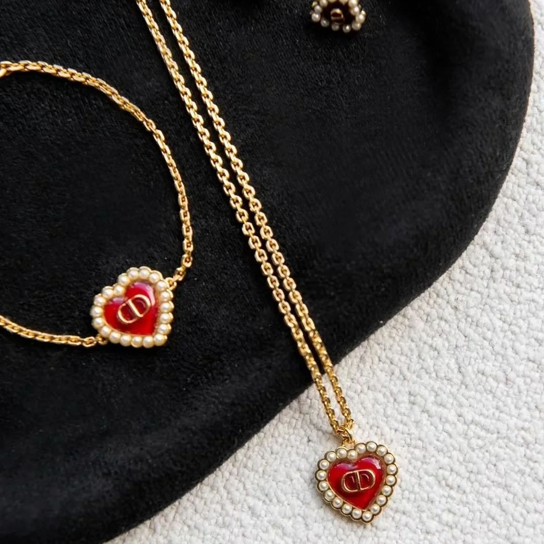 高版本V金D家复古珍珠项链CD珍珠桃心女网红主播红色桃心锁骨链