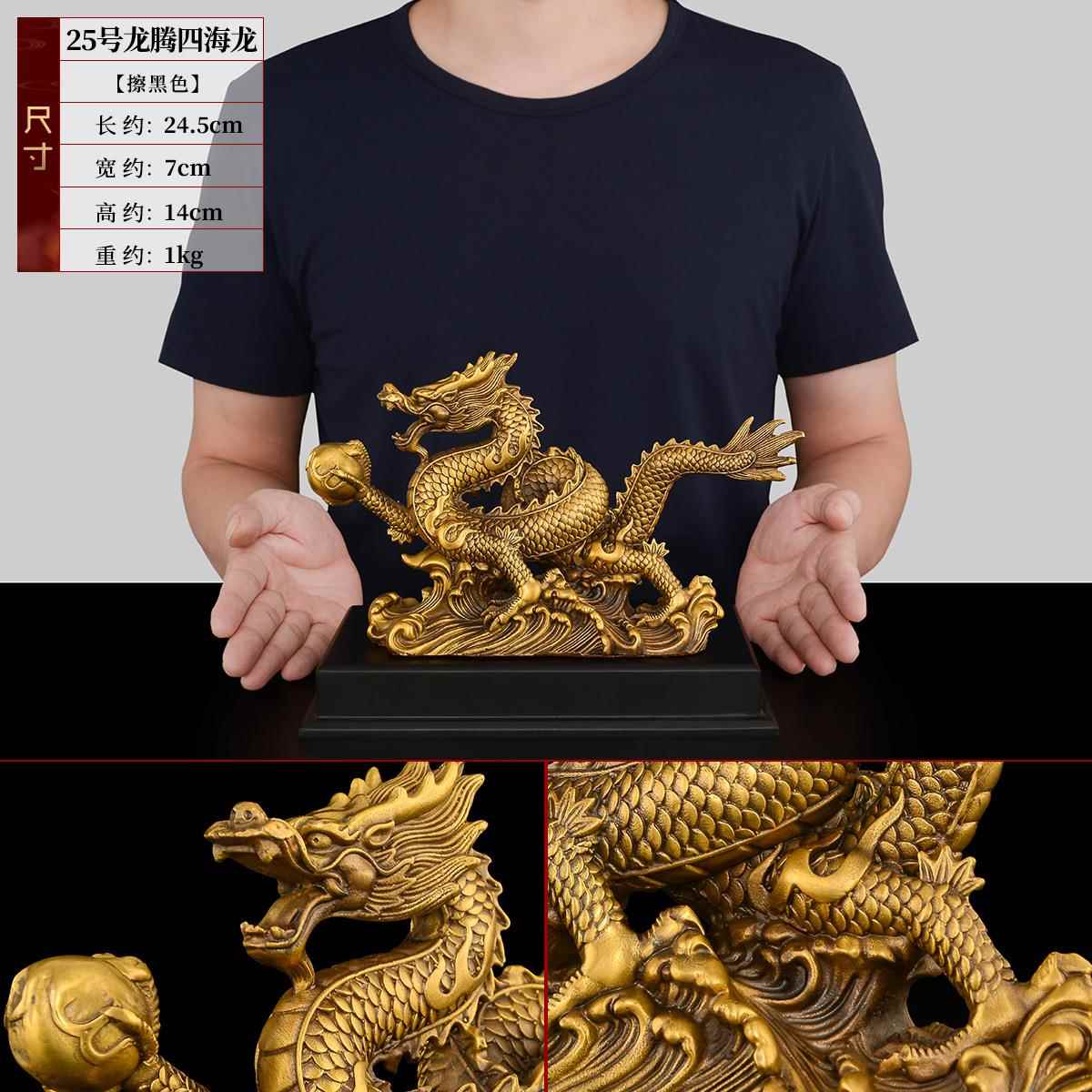 正品黄铜青龙摆件龙四腾海龙生肖办公室客厅2024龙年吉祥物工艺龙