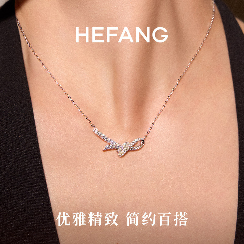 [新品]HEFANG何方珠宝丝带情书项链锁骨链饰品轻奢优雅圣诞礼物