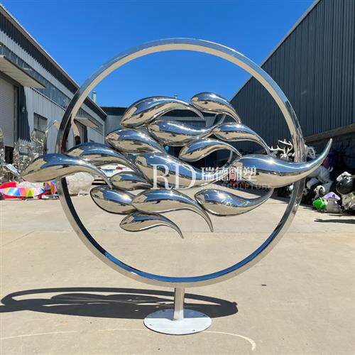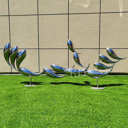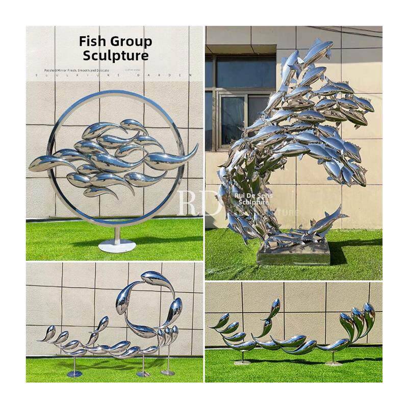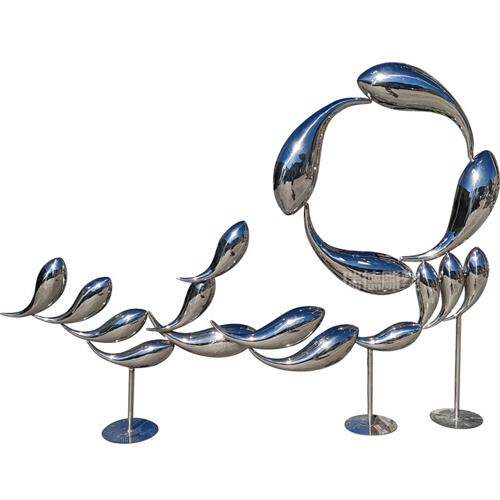 彷真小鱼抽象鱼雕塑售楼部水池装饰不锈钢切片鱼群海洋海豚摆件