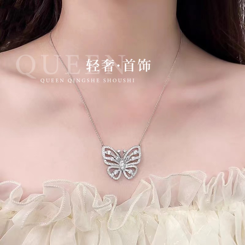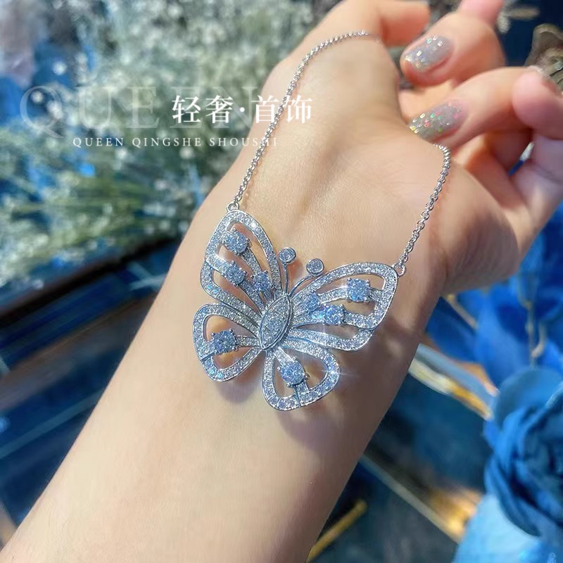 PT950铂金进口D色莫桑石奢华大气大蝴蝶满钻项链简约超闪吊坠锁骨