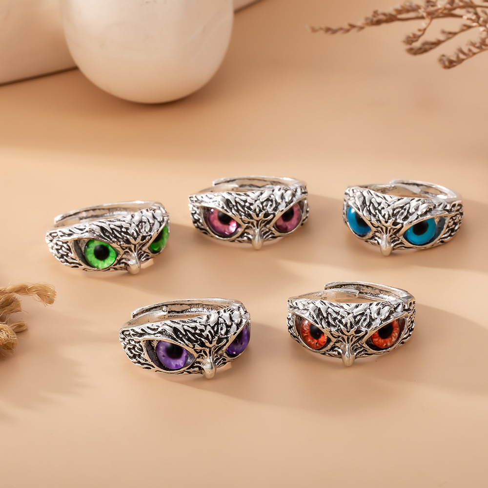 欧美女彩色开口指环Owl Personalized Colorful Open Ring Ring