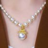 高级感满钻花朵白色珠珠项链气质百搭时尚配饰设计感项链耳环女