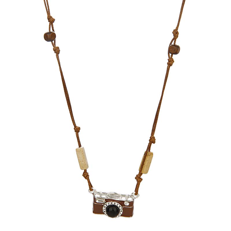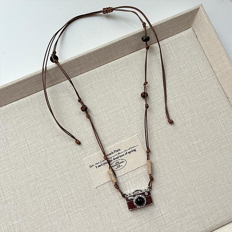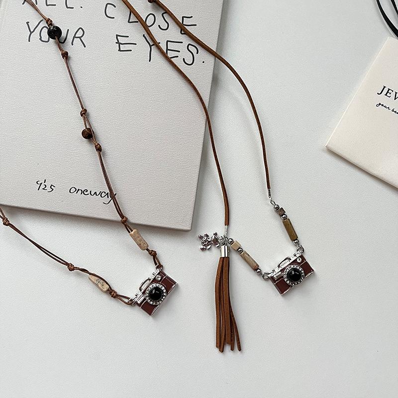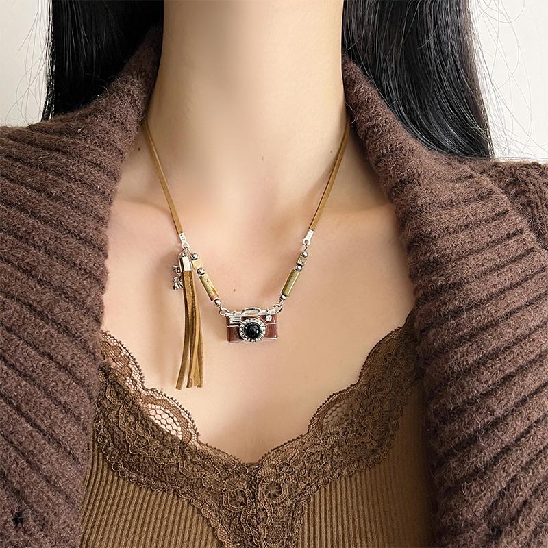 复古咖色相机项链女美拉德甜酷辣妹风小众个性毛衣链2025新款配饰