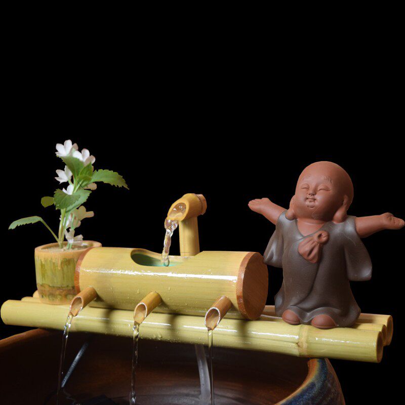 鱼缸过滤器竹节创意造景摆件办公室流水生财装饰品养鱼制氧气设备