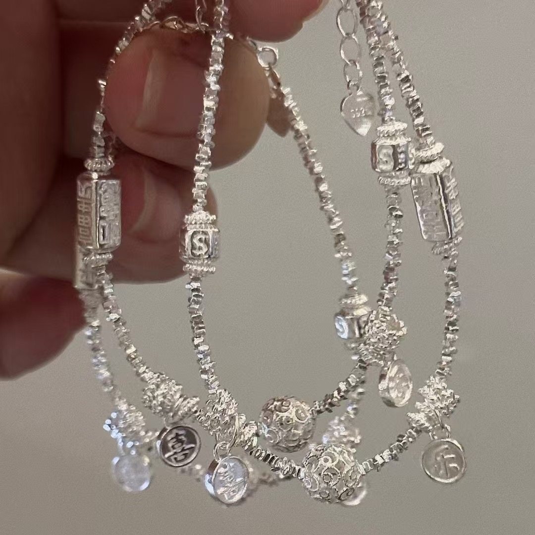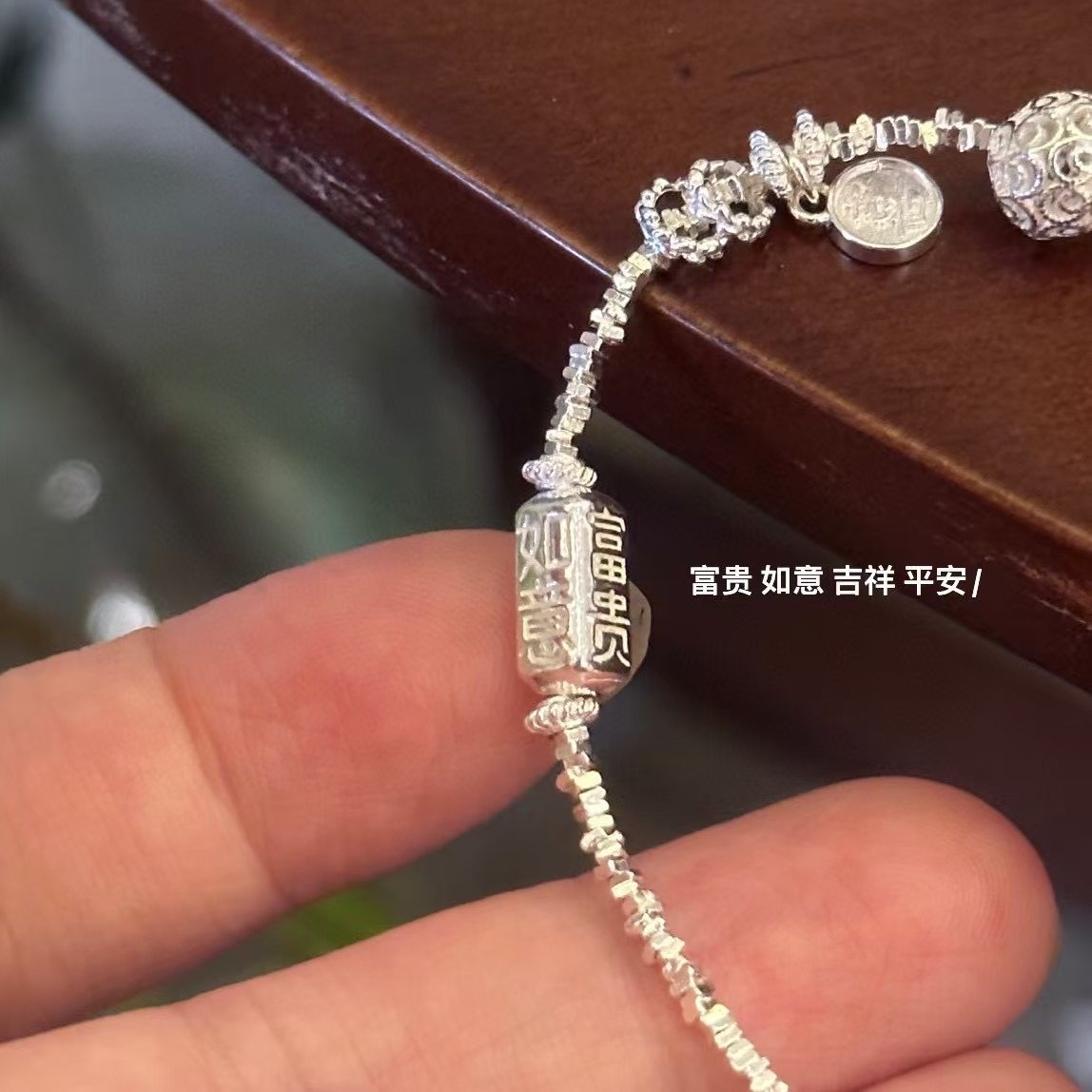 【曼光】新款喜乐牌转筒碎银子手链女通体纯银原创设计国风高级感