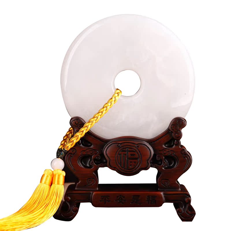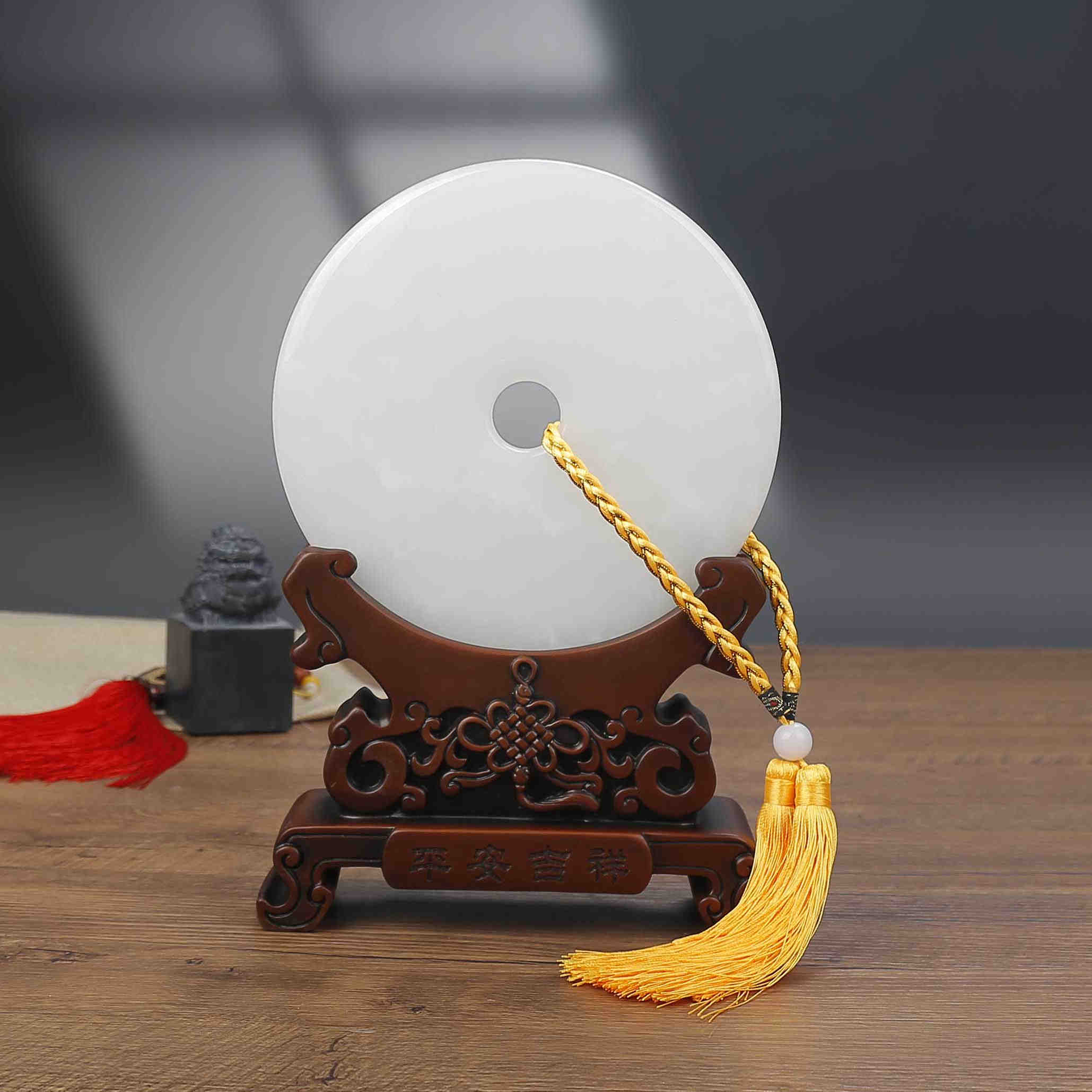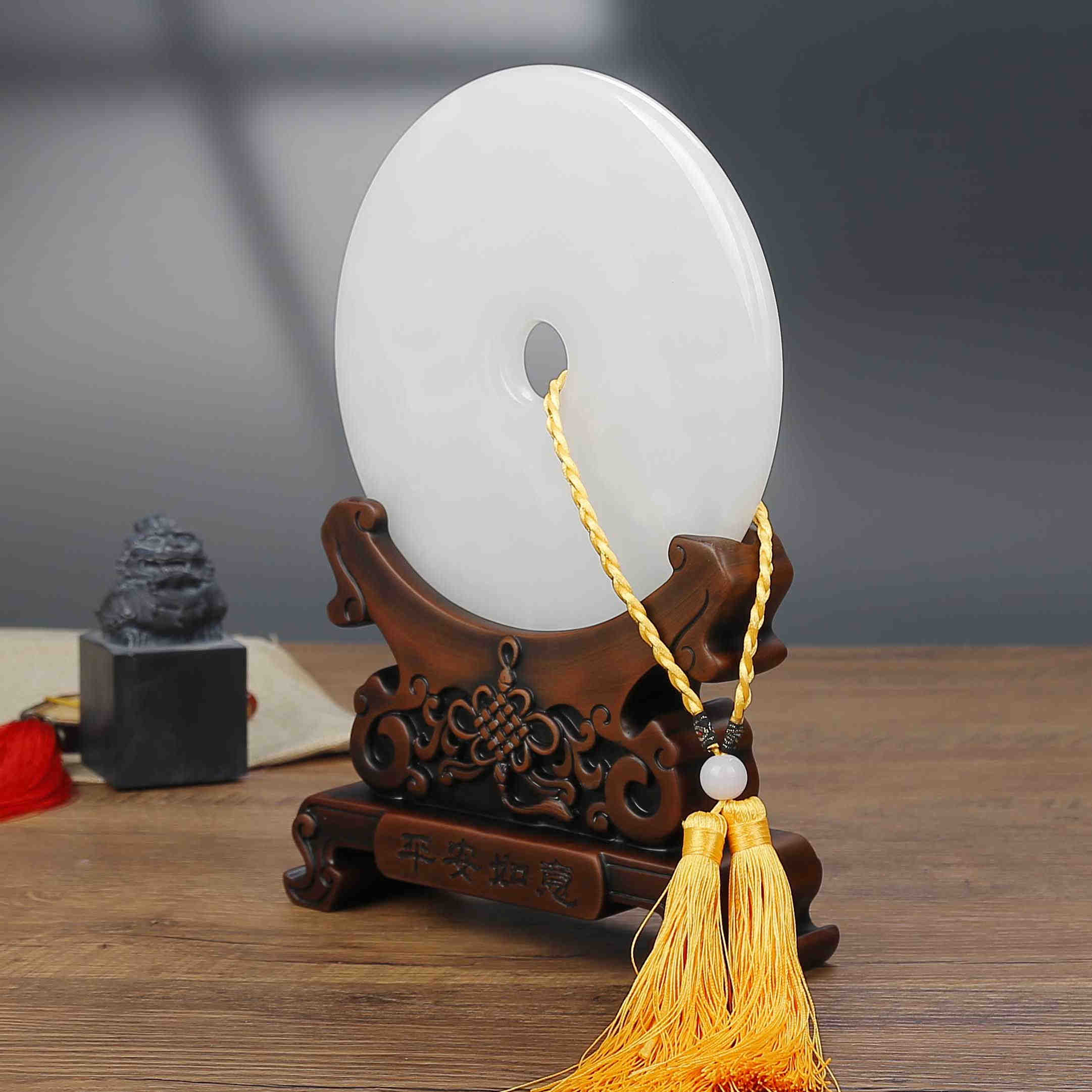 天然阿富汗玉石平安扣客厅摆件现代玄关办公室乔迁酒柜家居摆件