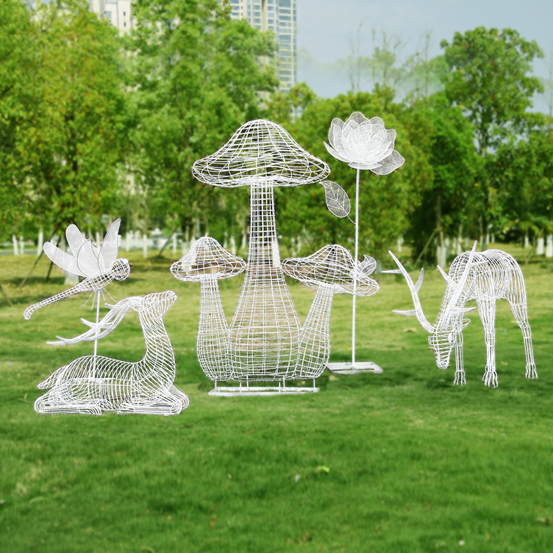 户外不锈钢镂空金属兔子蒲公英鹿蝴蝶花朵雕塑草坪园林景观摆件品