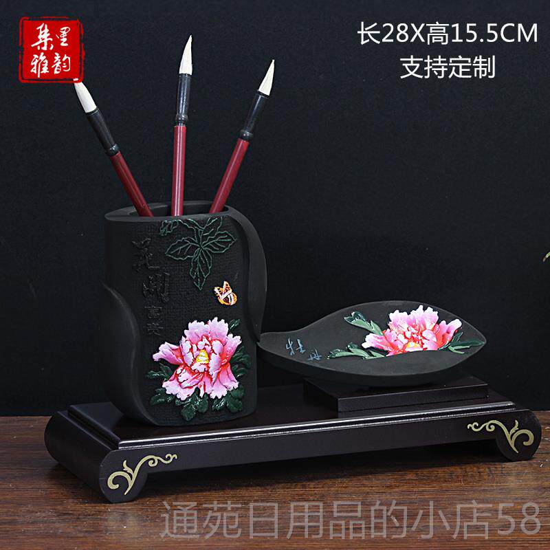 正品房笔筒摆件办公桌面炭送雕书送老室师实用客户国风商务礼品纪