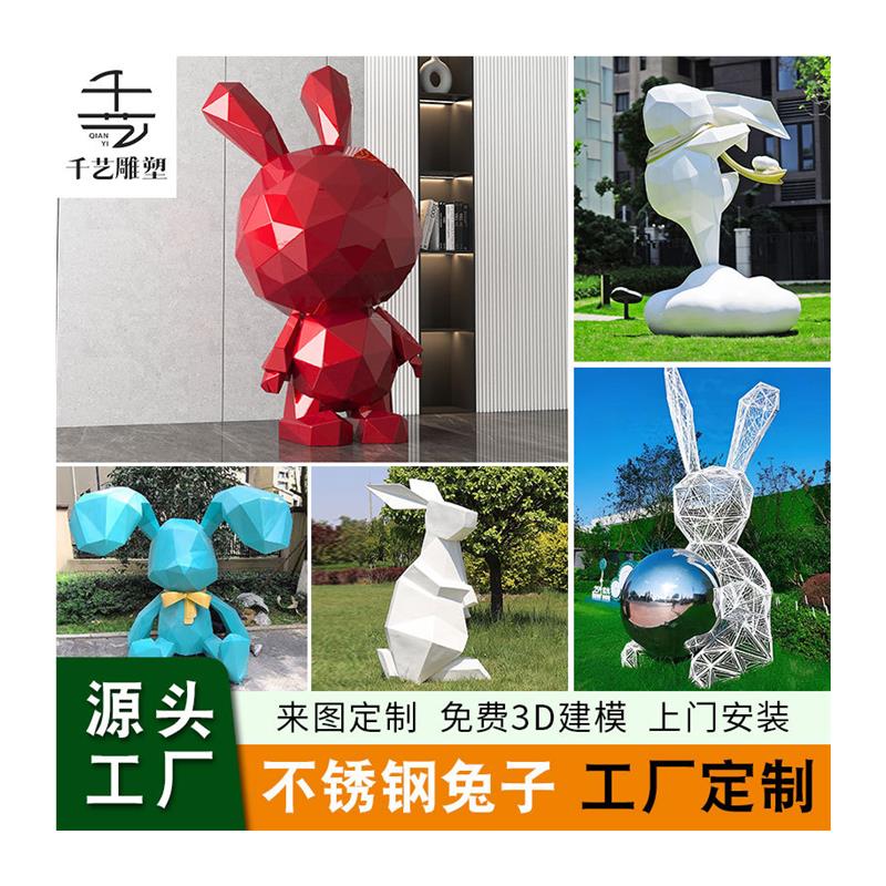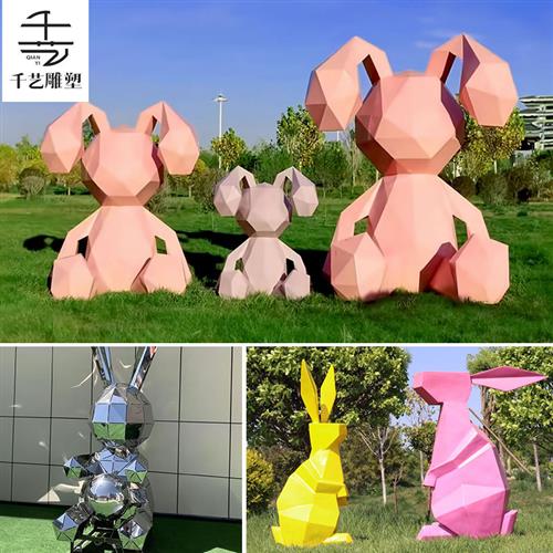 大型镜面小兔子不锈钢雕塑定制厂家几何落地装饰开业门厅摆件