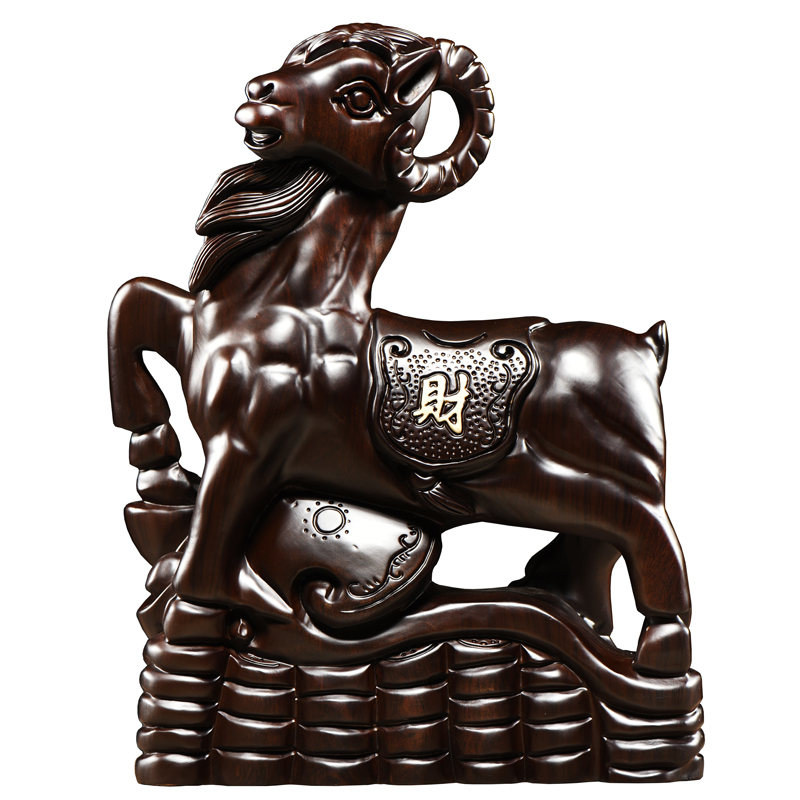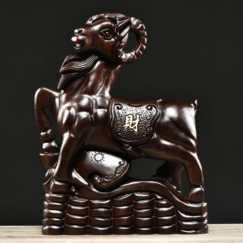 黑檀木雕领头羊摆件实木质生肖羊家居客厅办公装饰工艺品开业礼品