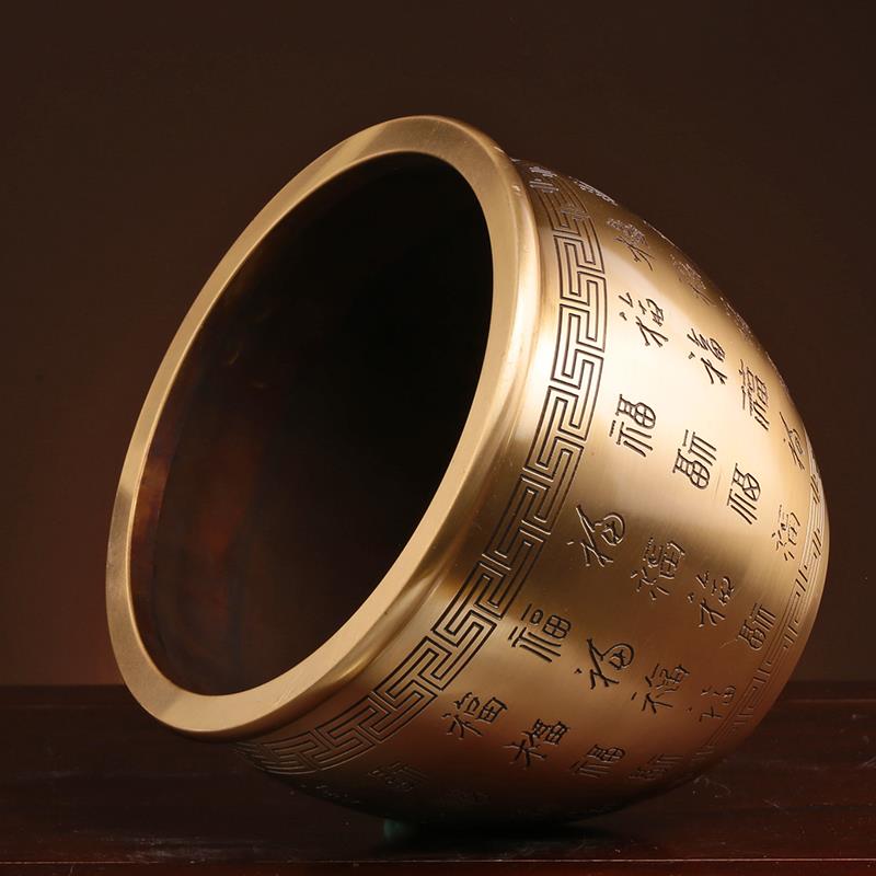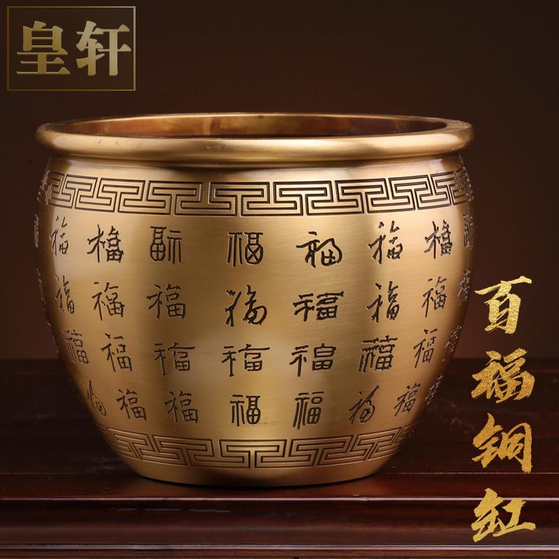 百福铜缸摆件烟缸水缸办公室笔筒桌面烟灰缸聚宝盆香炉中式装饰品
