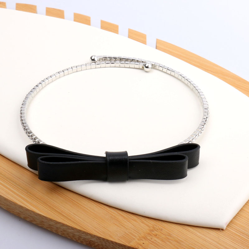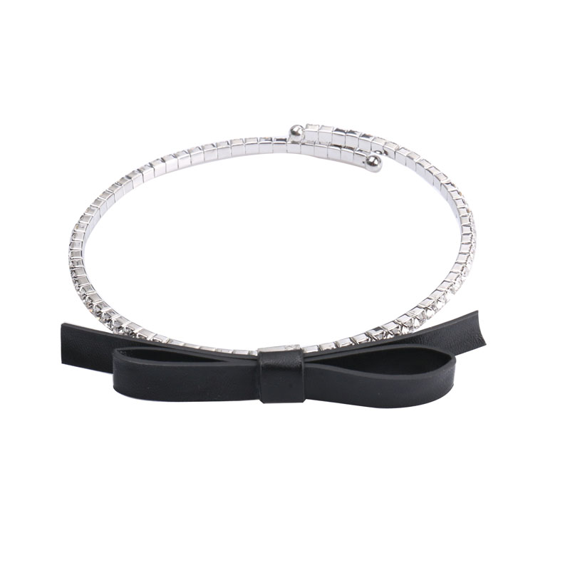 choker项圈女皮质蝴蝶结韩国网红新款满钻弹力颈圈闪钻简约项链潮