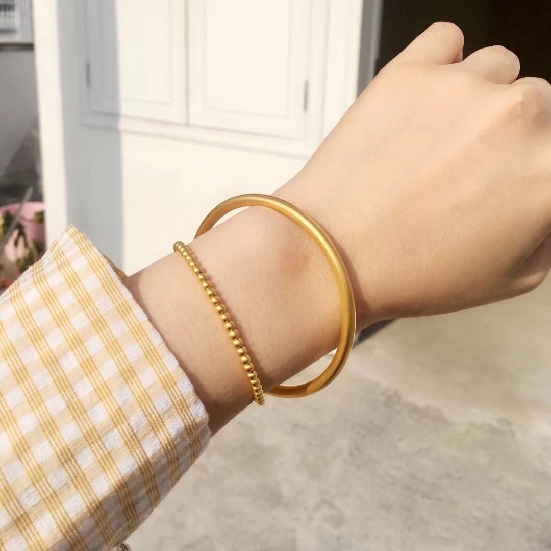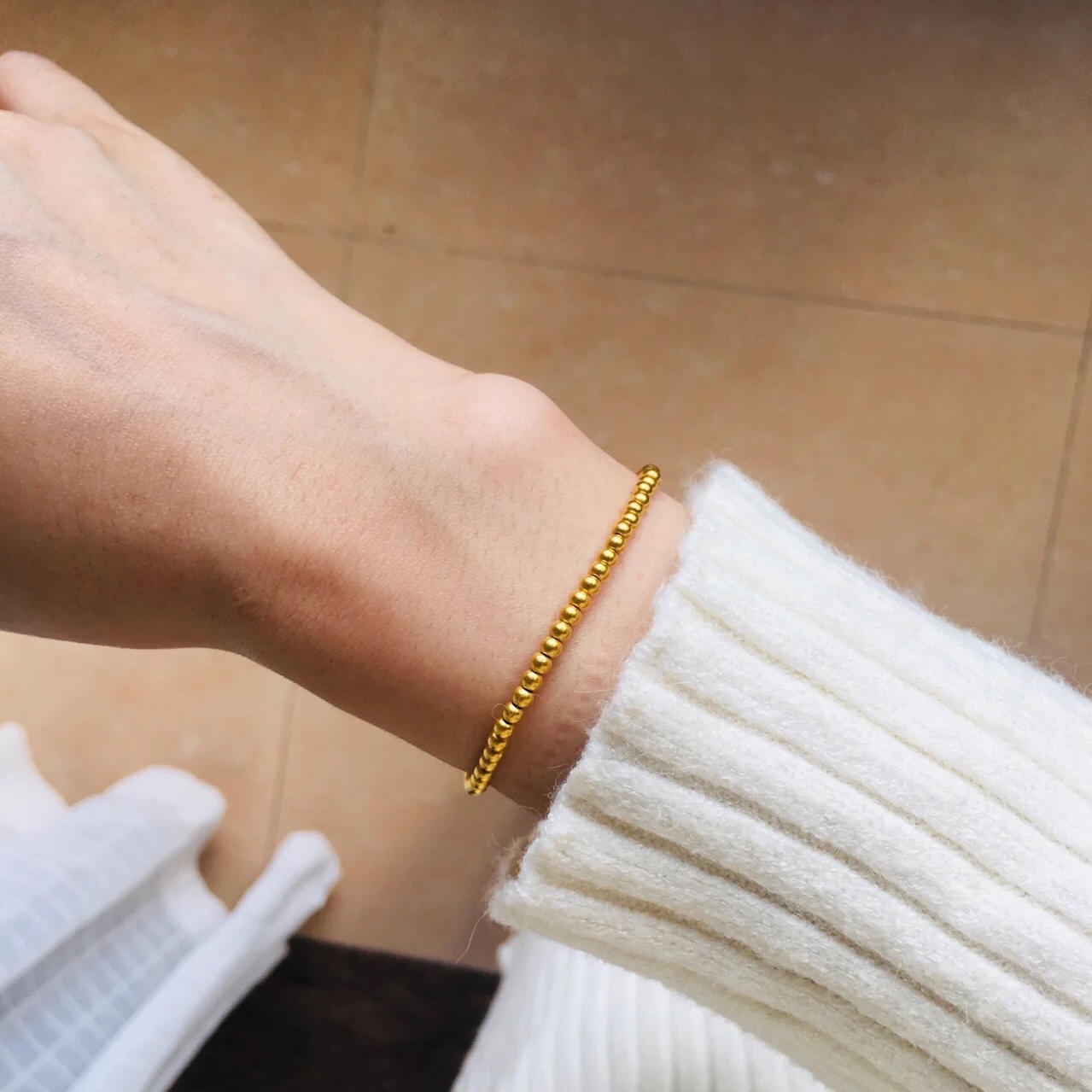 沙金古法传承仿黄金可水洗手链实心手镯女不掉色转运珠金珠手串潮