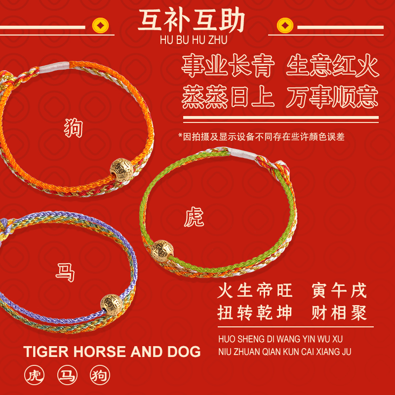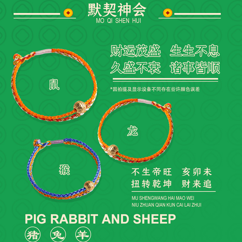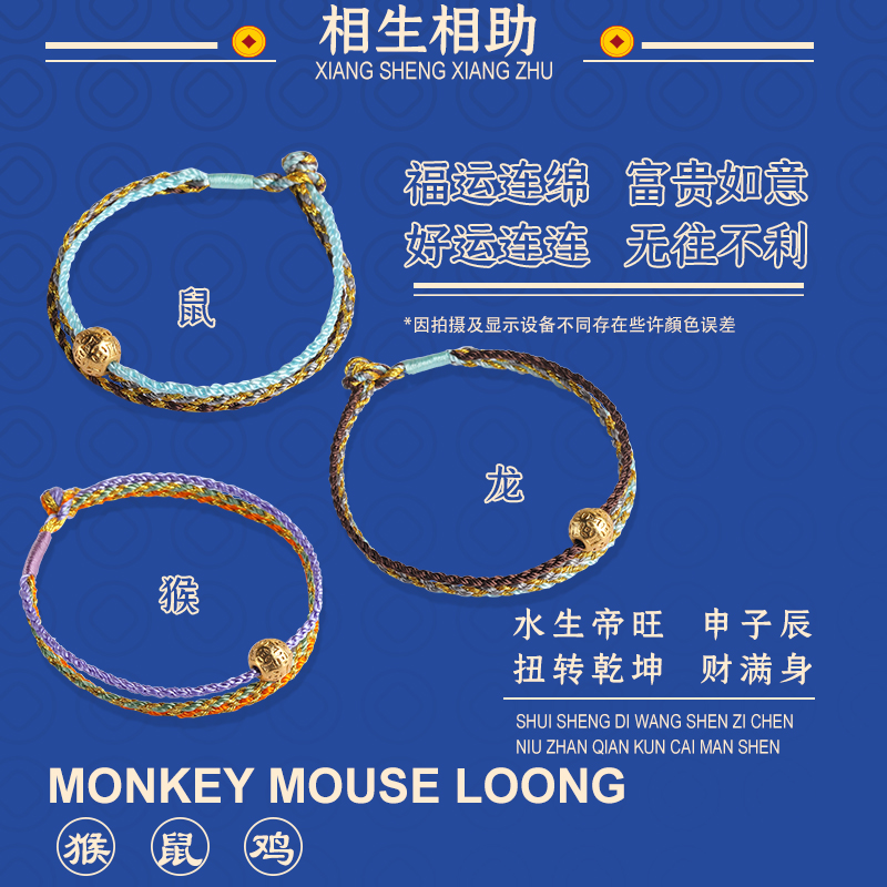 十二生肖三合合财本命年手链转运珠男女手工编织纯银镀金手绳礼物
