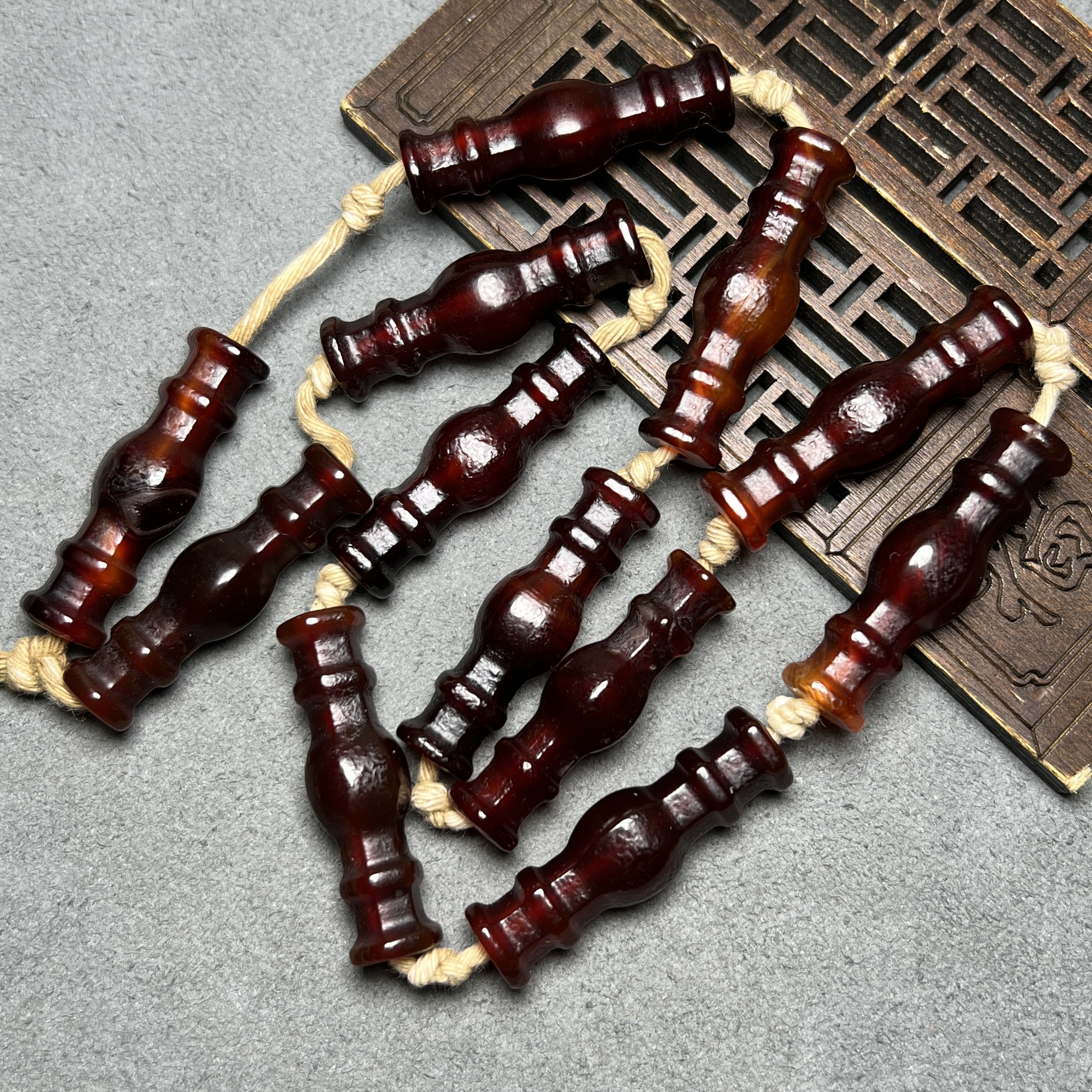 古玩老珠子辽金老酒红玛瑙天然六棱灯笼管珠桶珠腰珠顶珠文玩配饰