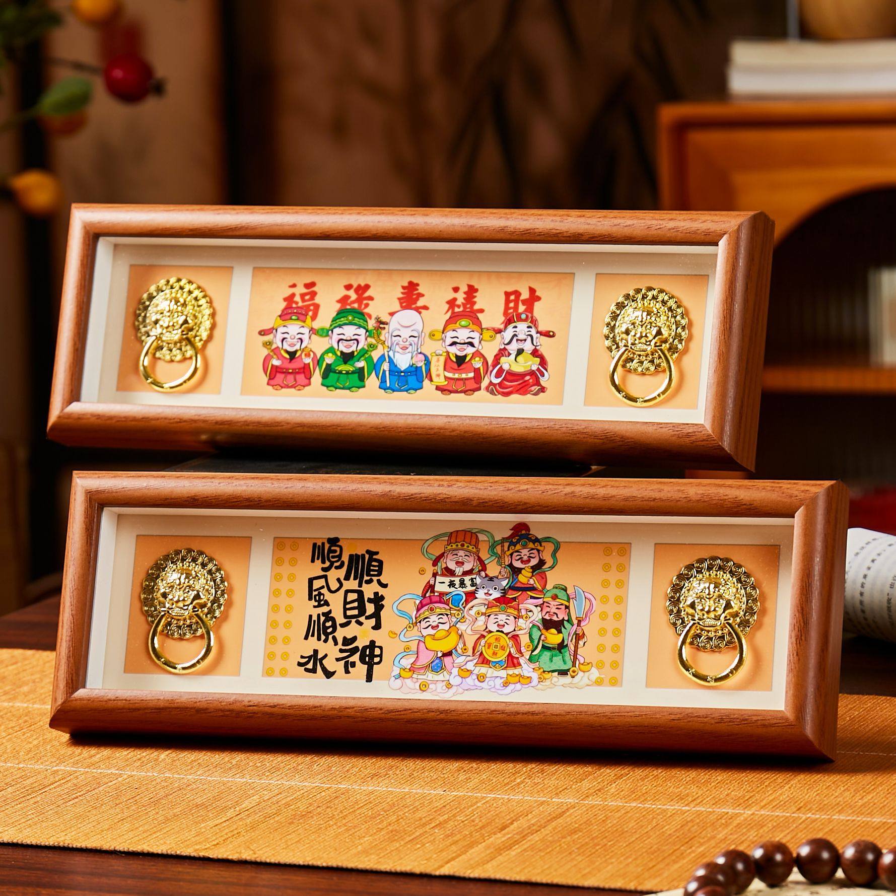新款横版五福临门新年装饰客厅玄关酒店名宿摆件挂画招财景区礼品