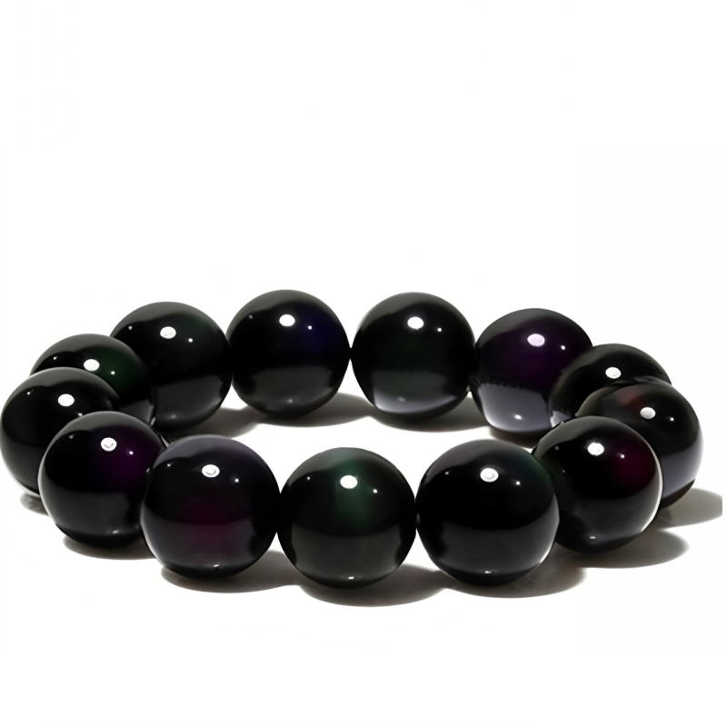 天然彩虹眼乌金黑曜石单圈手链男女通用本命年饰品散珠水晶