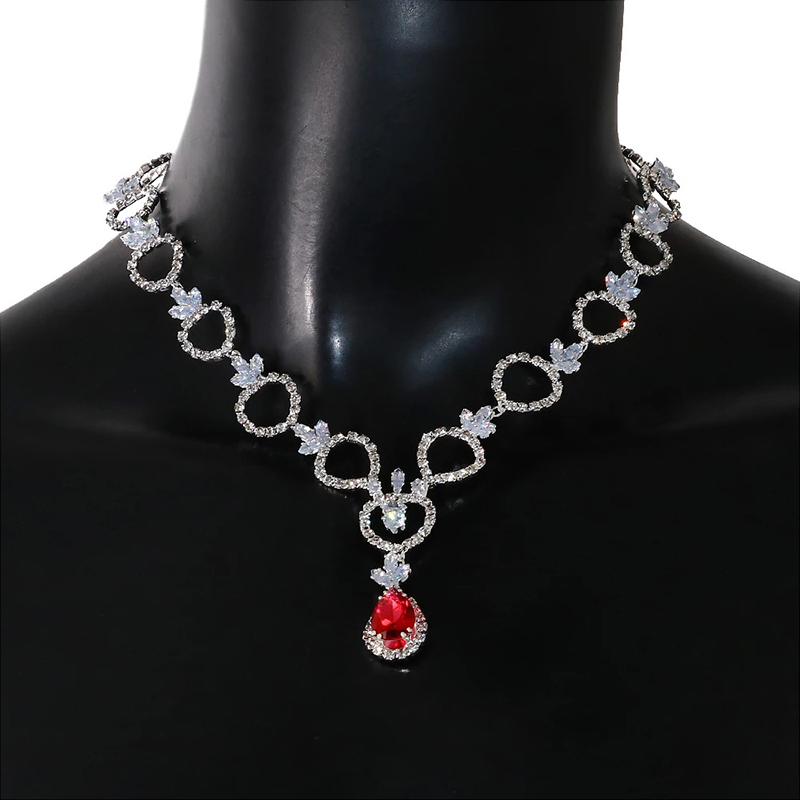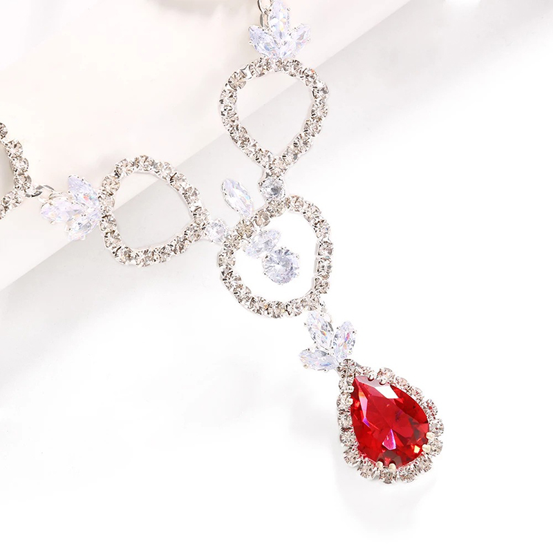 装饰项链女镂空新娘锆石项链欧美饰品高级感轻奢红色水滴锁骨链