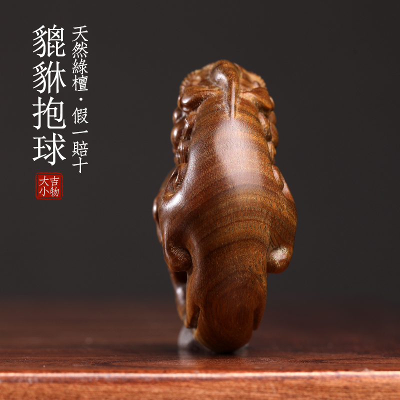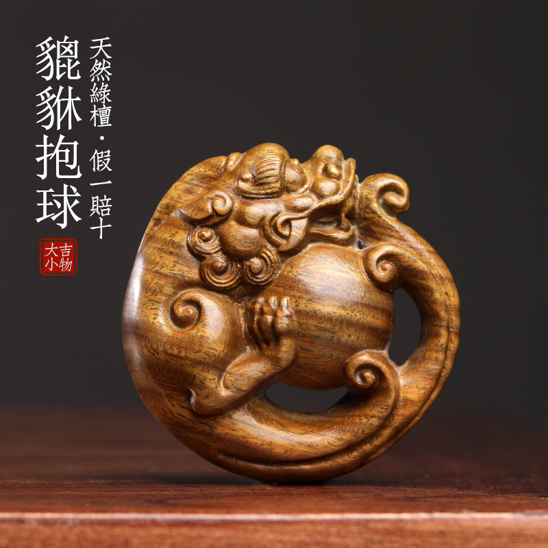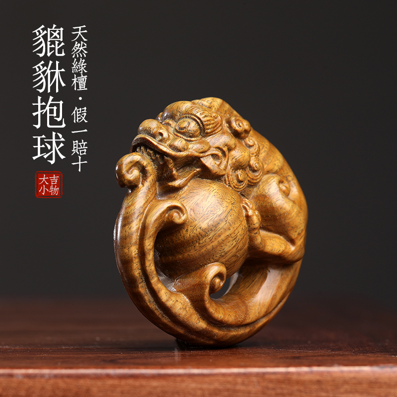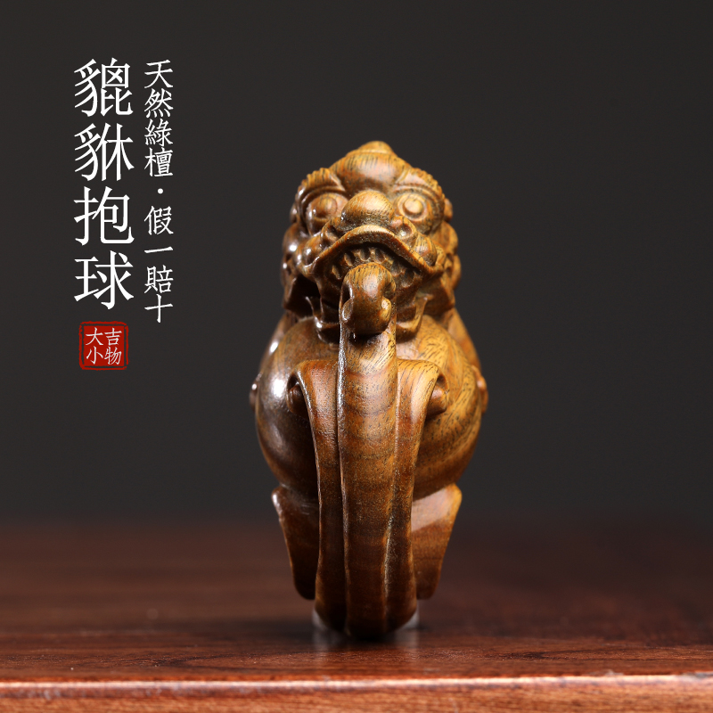 极速天然绿檀木雕m抱球貔貅手把件桌面工艺品有球必应文玩摆件