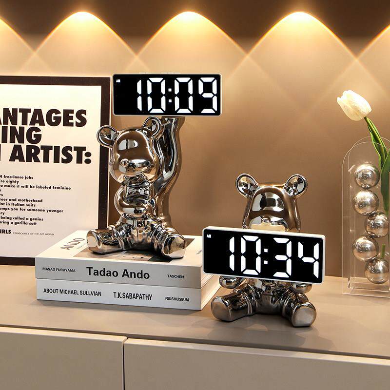 客厅创意暴力熊表钟智能小闹钟桌面电子数字时钟摆件摆台式钟表