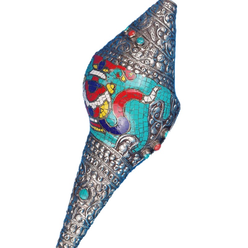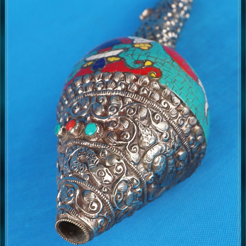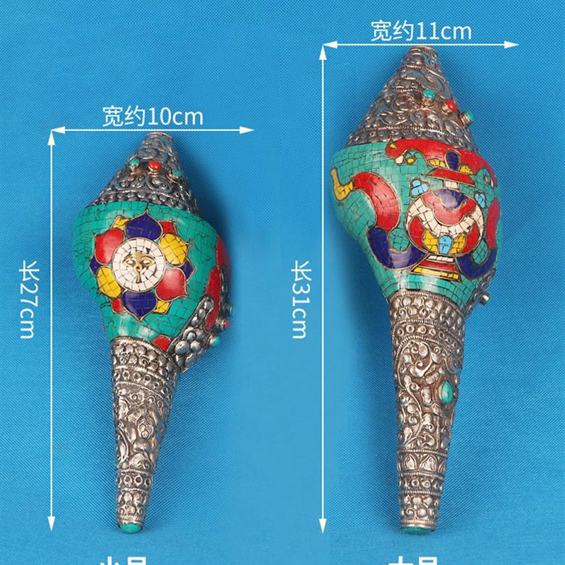 速发尼泊尔海螺手工行铜雕花号用修包家角能吹响摆件