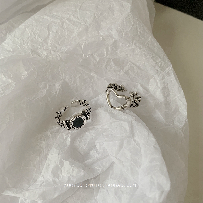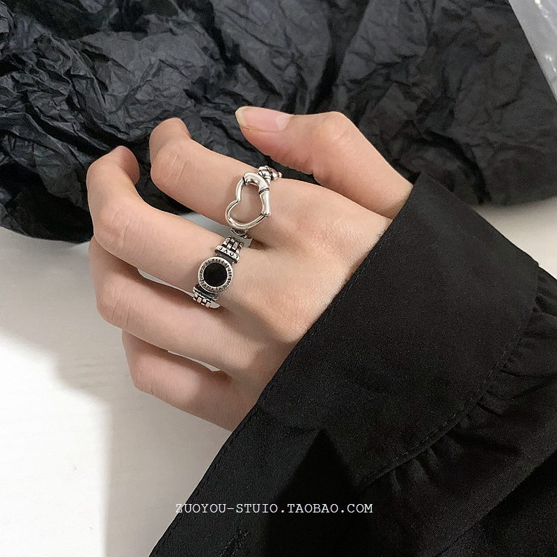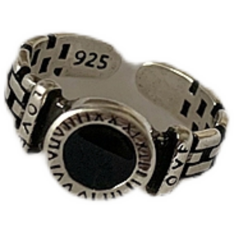 欧美复古黑色罗马字母戒指女ins冷淡风小众设计高级感开口食指戒