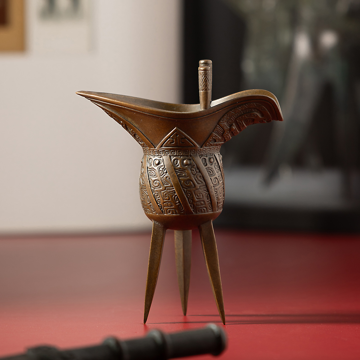 全铜酒杯仿古爵杯 客厅房间装饰摆件 酒柜青铜器创意古代酒杯酒具