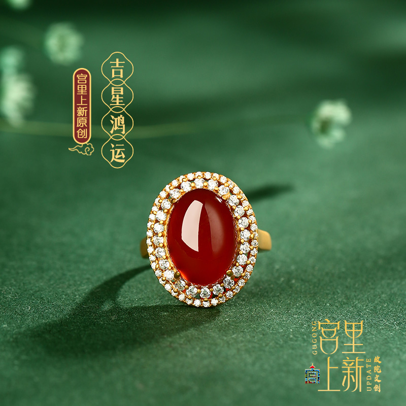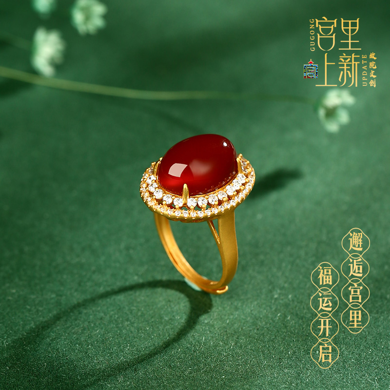 宫里上新红玛瑙戒指女纯银轻奢高级感红宝石红色生日礼物送妈妈