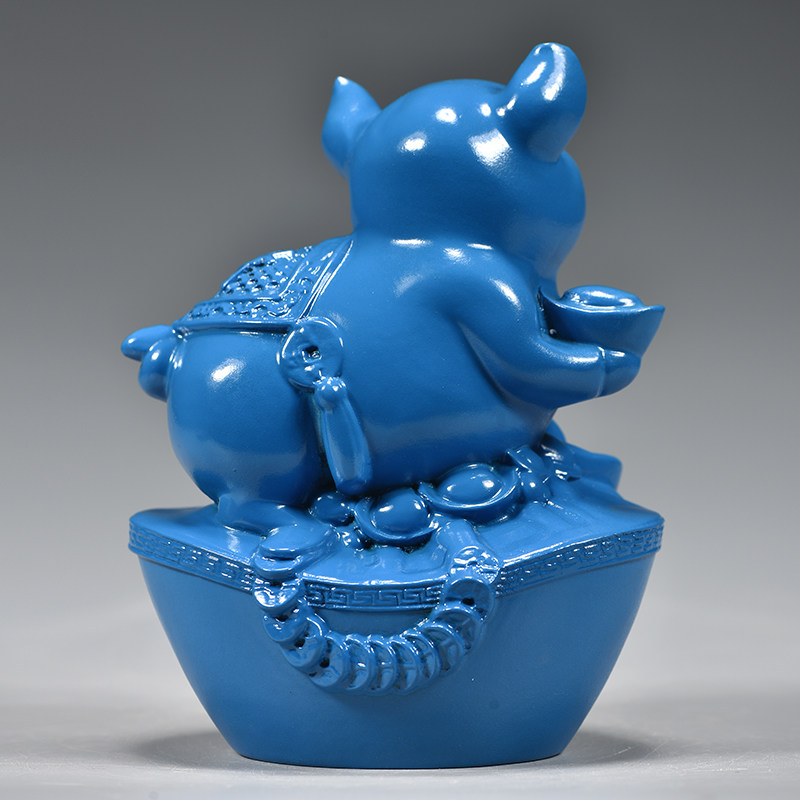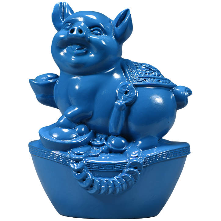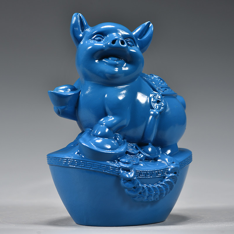 蓝色实木猪摆件木质雕刻十二生肖木头小猪猪吉祥物装饰木制工艺品