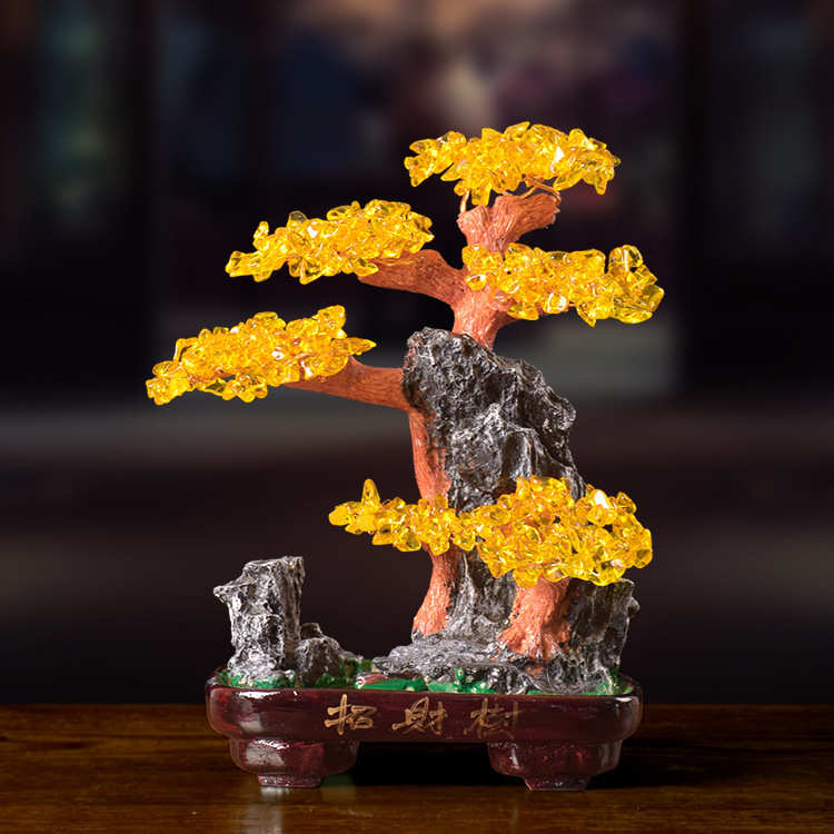 黄水晶招财摇钱树家居装饰品摆件客厅电视柜办公室酒柜架开业礼品