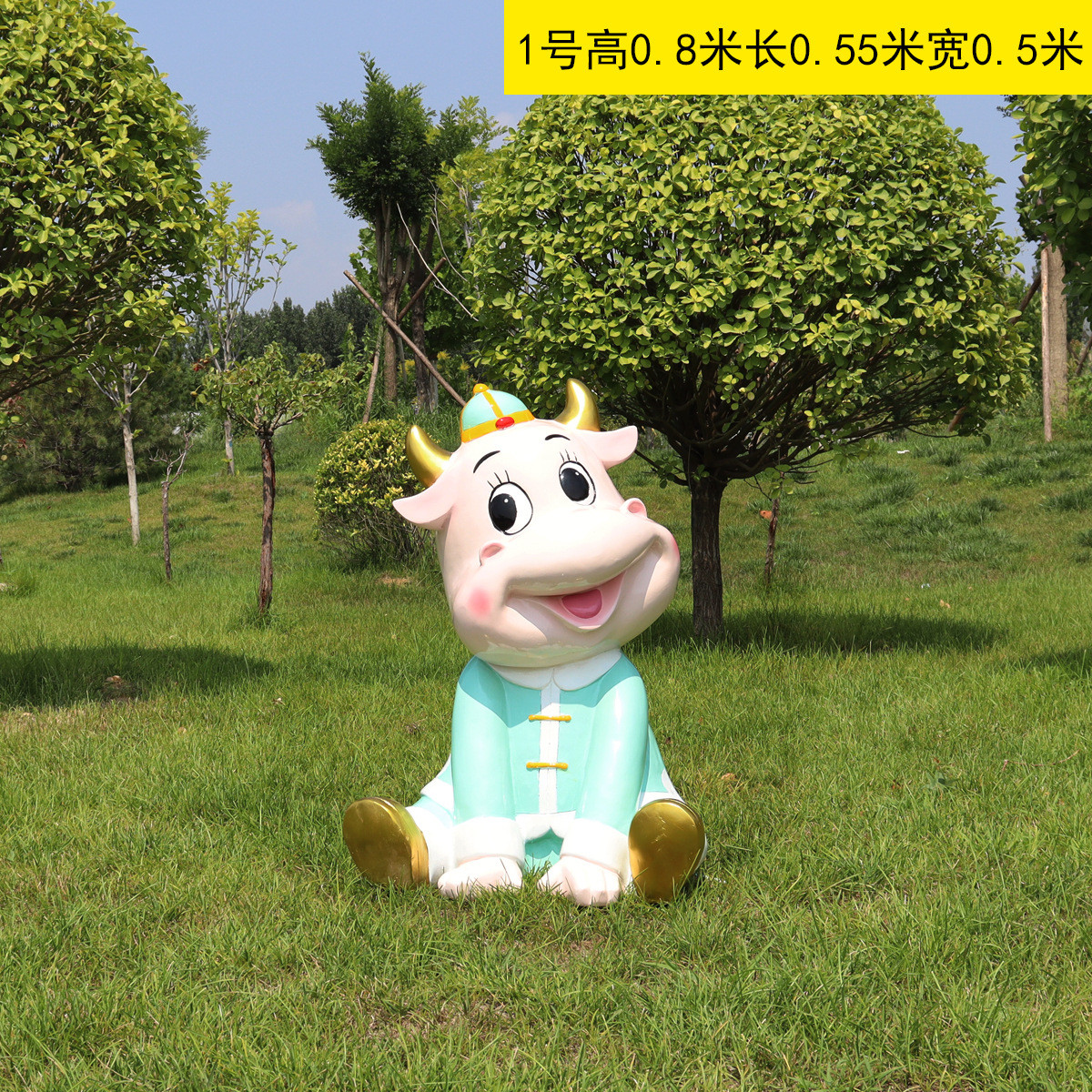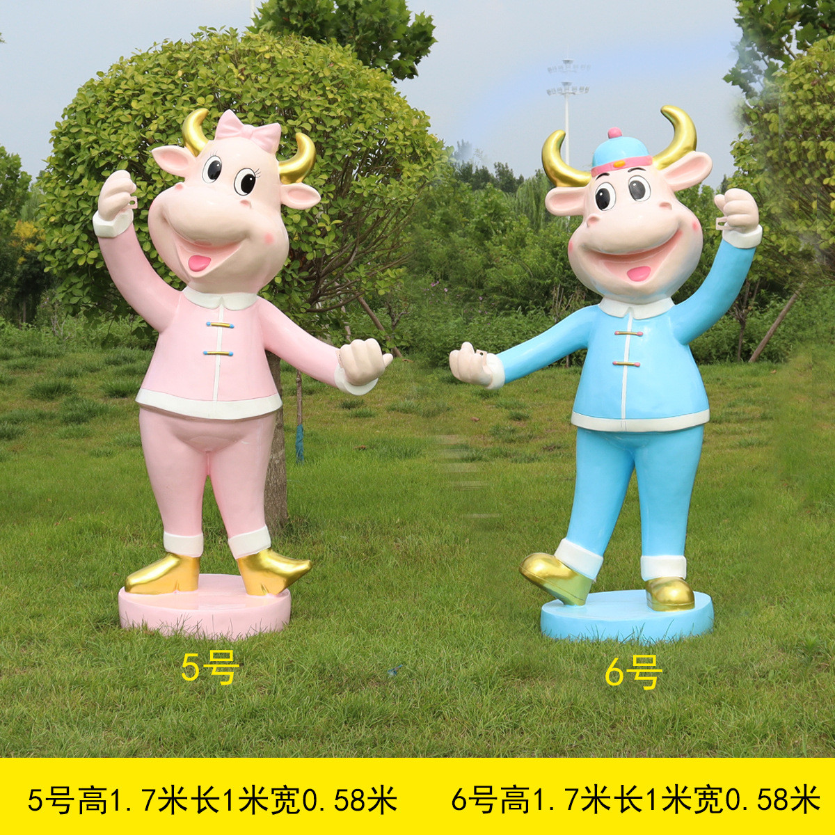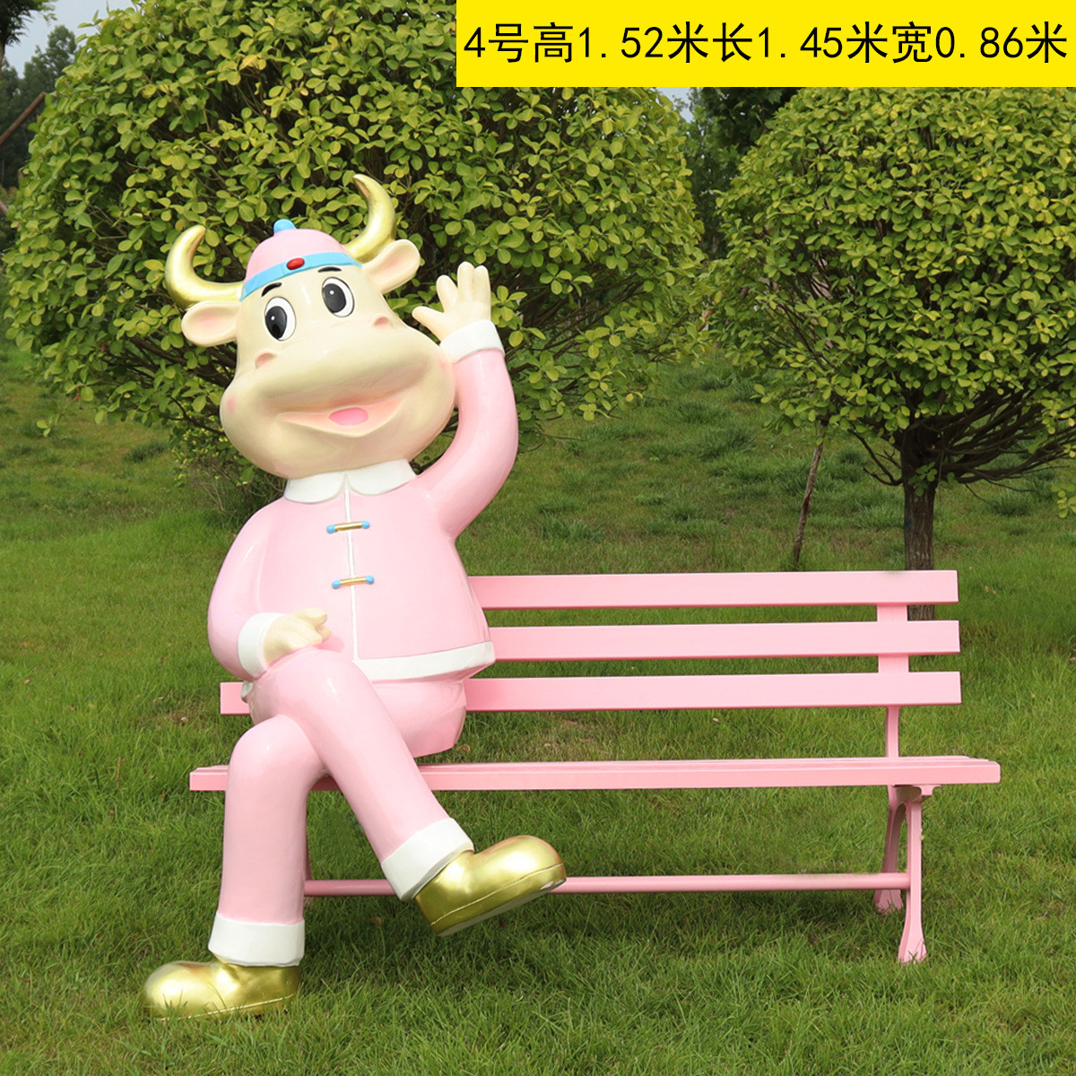 户外公园绿地广场玻璃钢卡通牛摆件打卡比心座椅雕塑园林动物雕塑