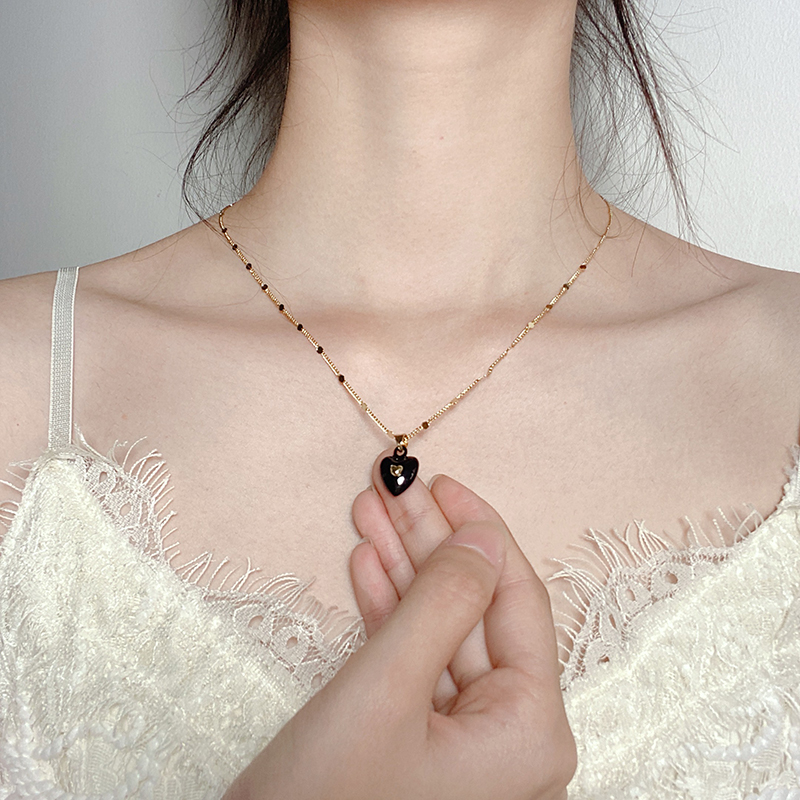 气质简约黑色温柔设计师款爱心珐琅项链女高级小众锁骨链百搭颈链